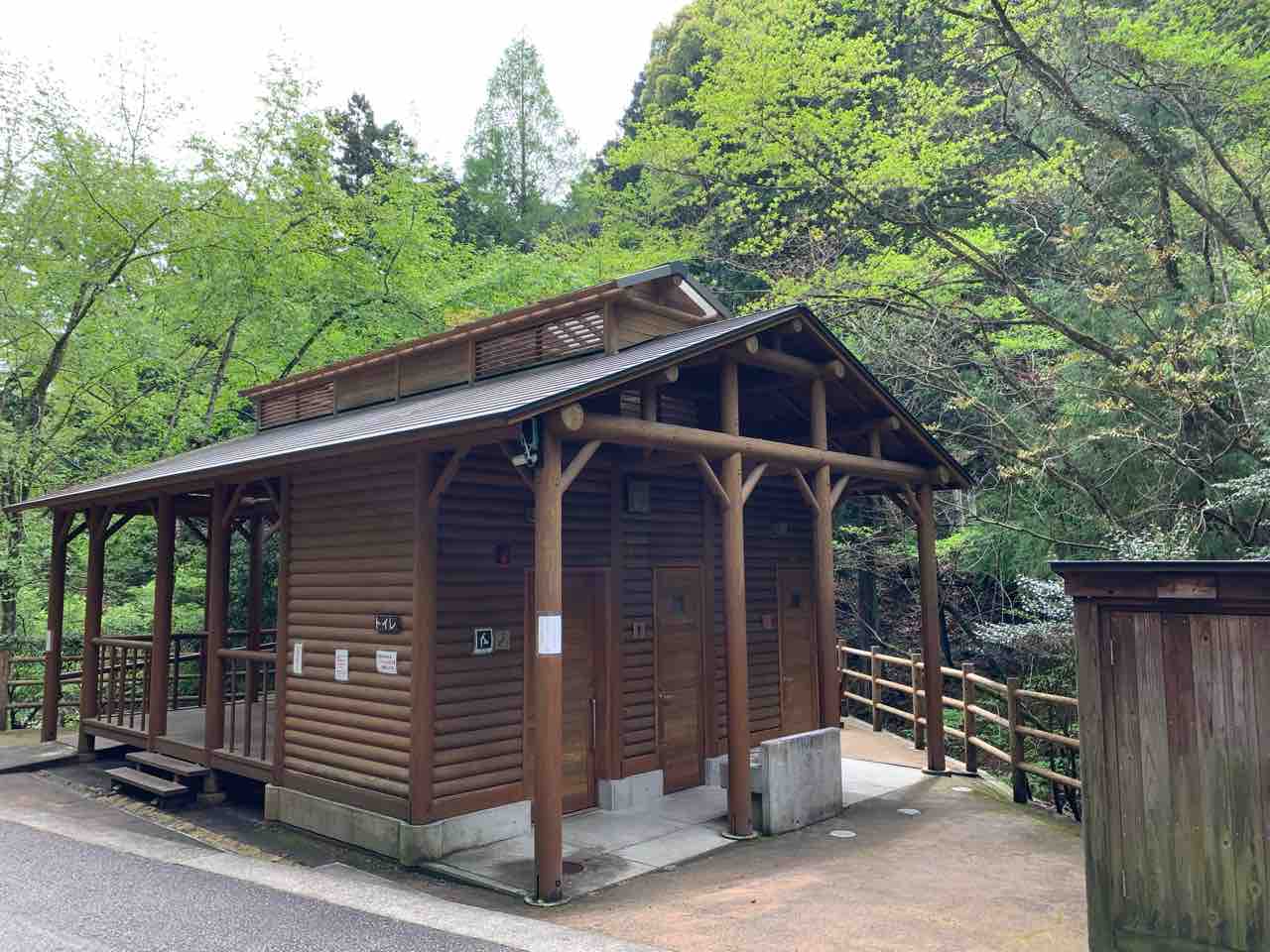 キャンプ場手前にあります。これはロッジ?いいえ、トイレです。