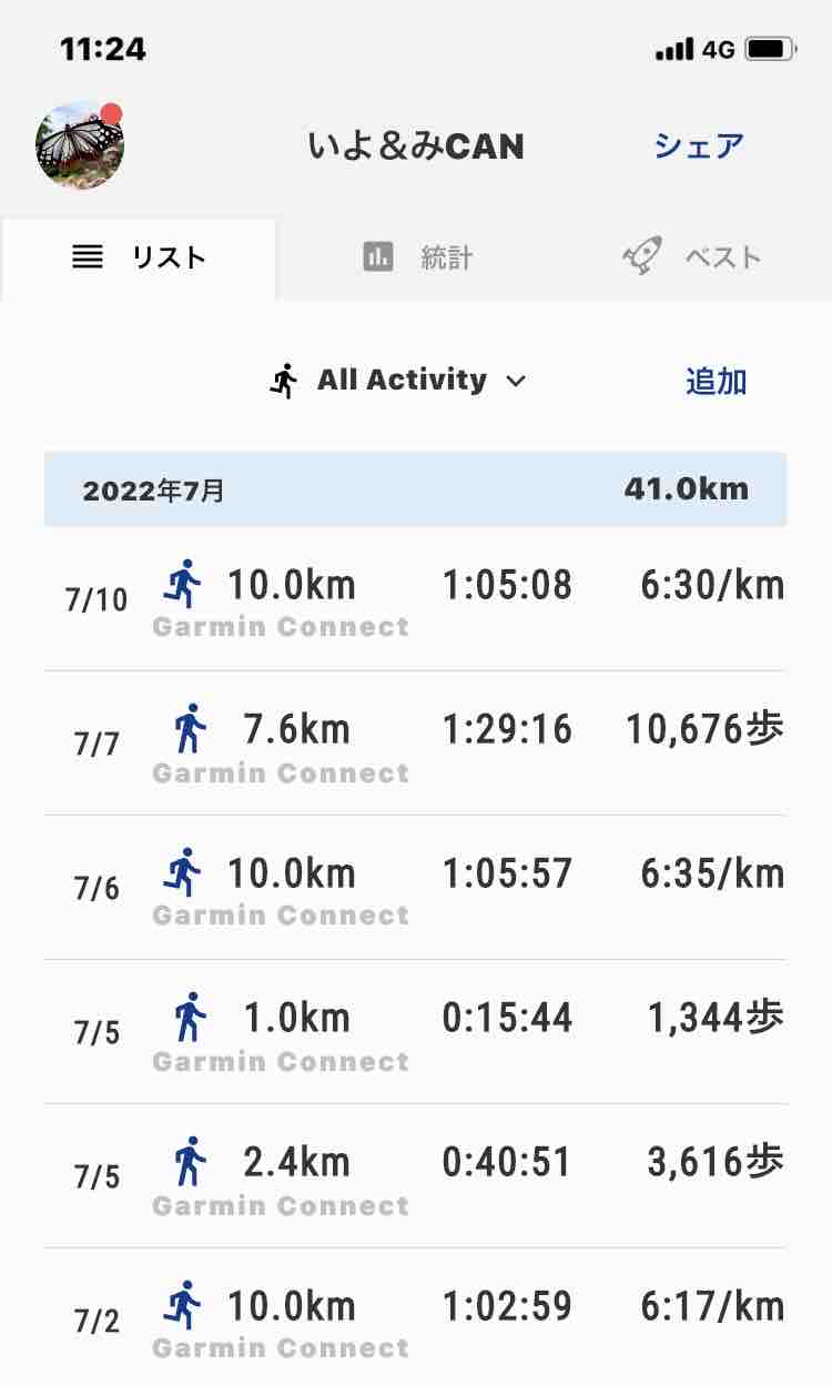 7月 7日(木)歩いて7.6km