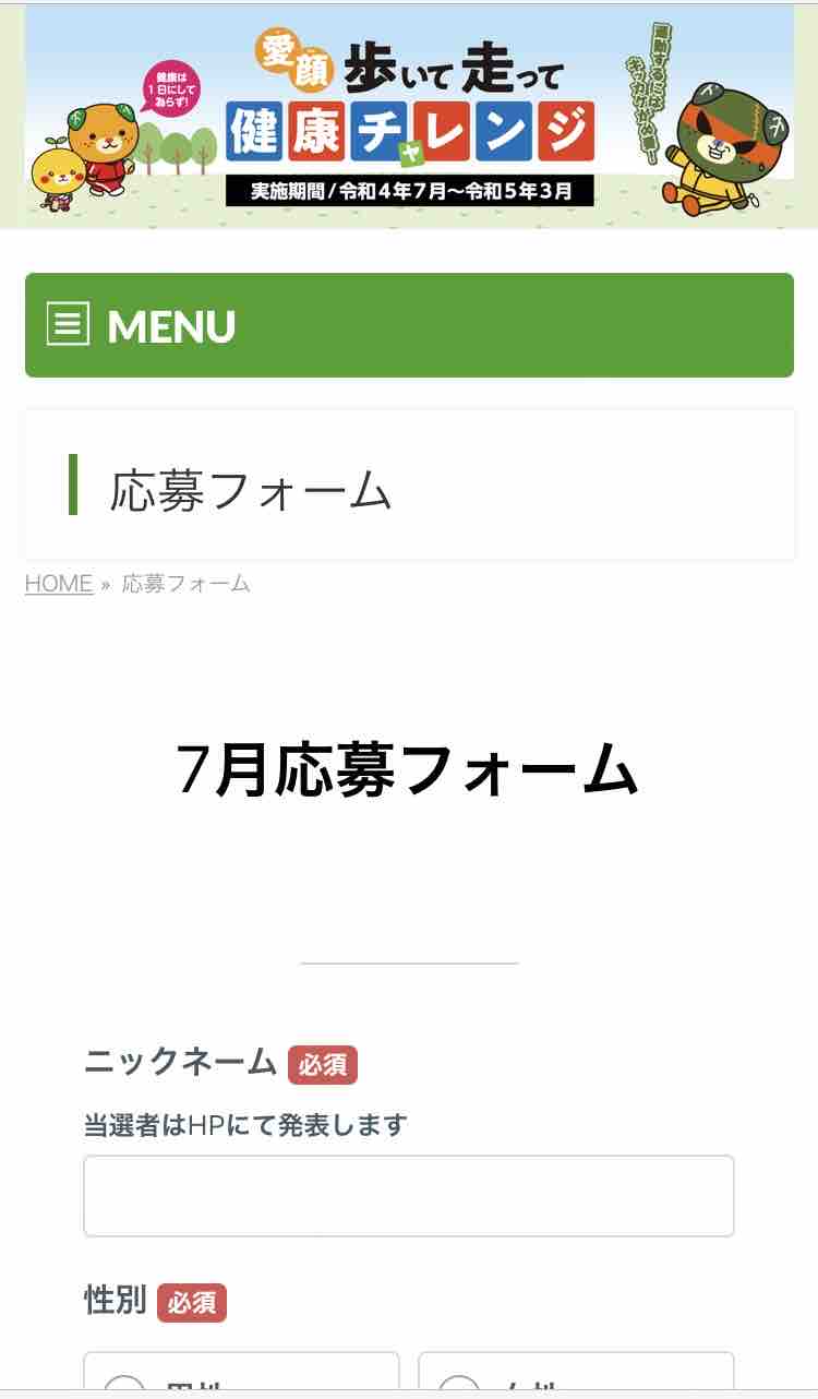 「愛媛歩いて走って健康チャレンジ」のHPを開き※スマホの場合