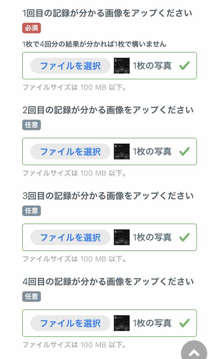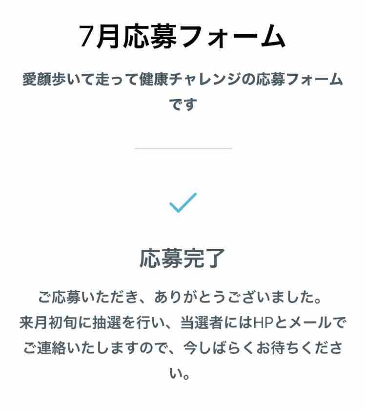 1ヶ月間に4回達成できたら、スマートフォン画面のスクリーンショット等、結果が分かるものを専用応募フォームよりお送りします。3-1.愛顔歩いて走って健康チャレンジの応募は、