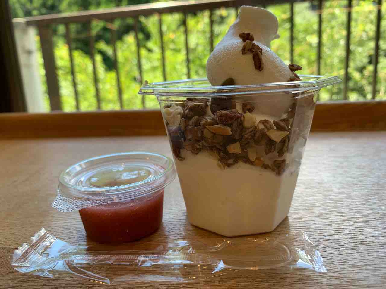 グラノーラは牛乳やヨーグルトで食べることが多いのですが、ソフトクリームにグラノーラも相性が抜群です。