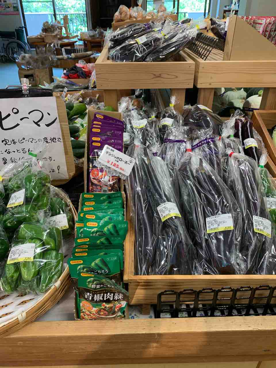 夏野菜(なすび・ピーマン・きゅうり・カボチャ等)が販売されています。
