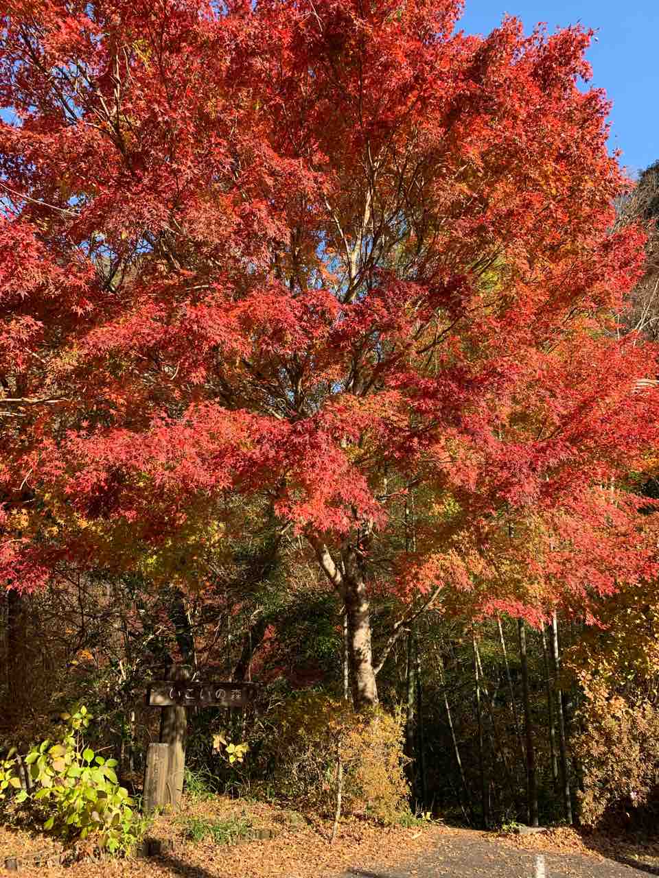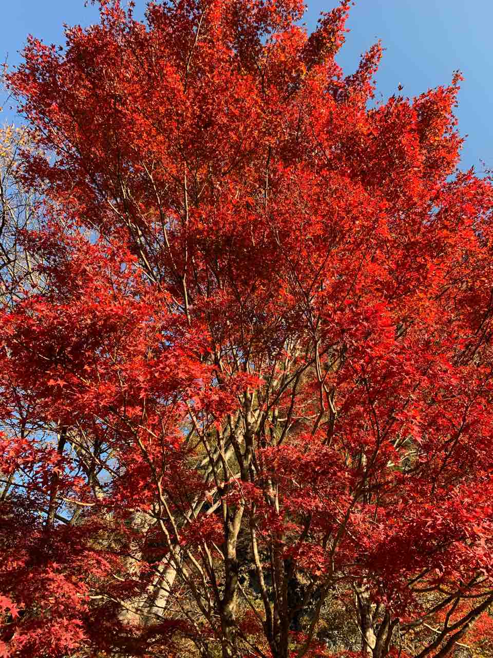 今が紅葉(こうよう)の真っ最中。ピークを迎えていました。もみじが真っ赤に色付いています。