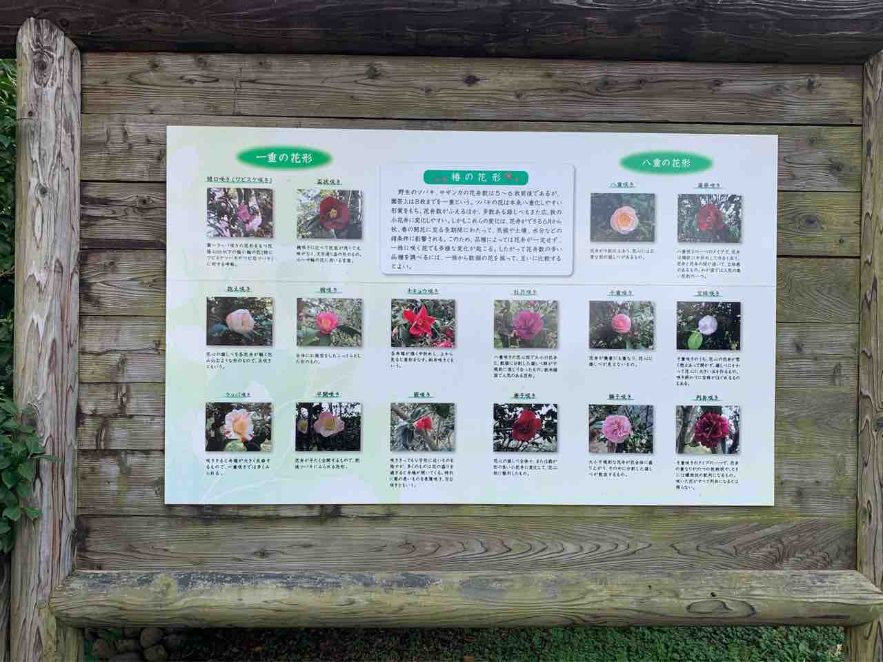 小道の両側には沢山の種類の椿(つばき)が植えられていました。