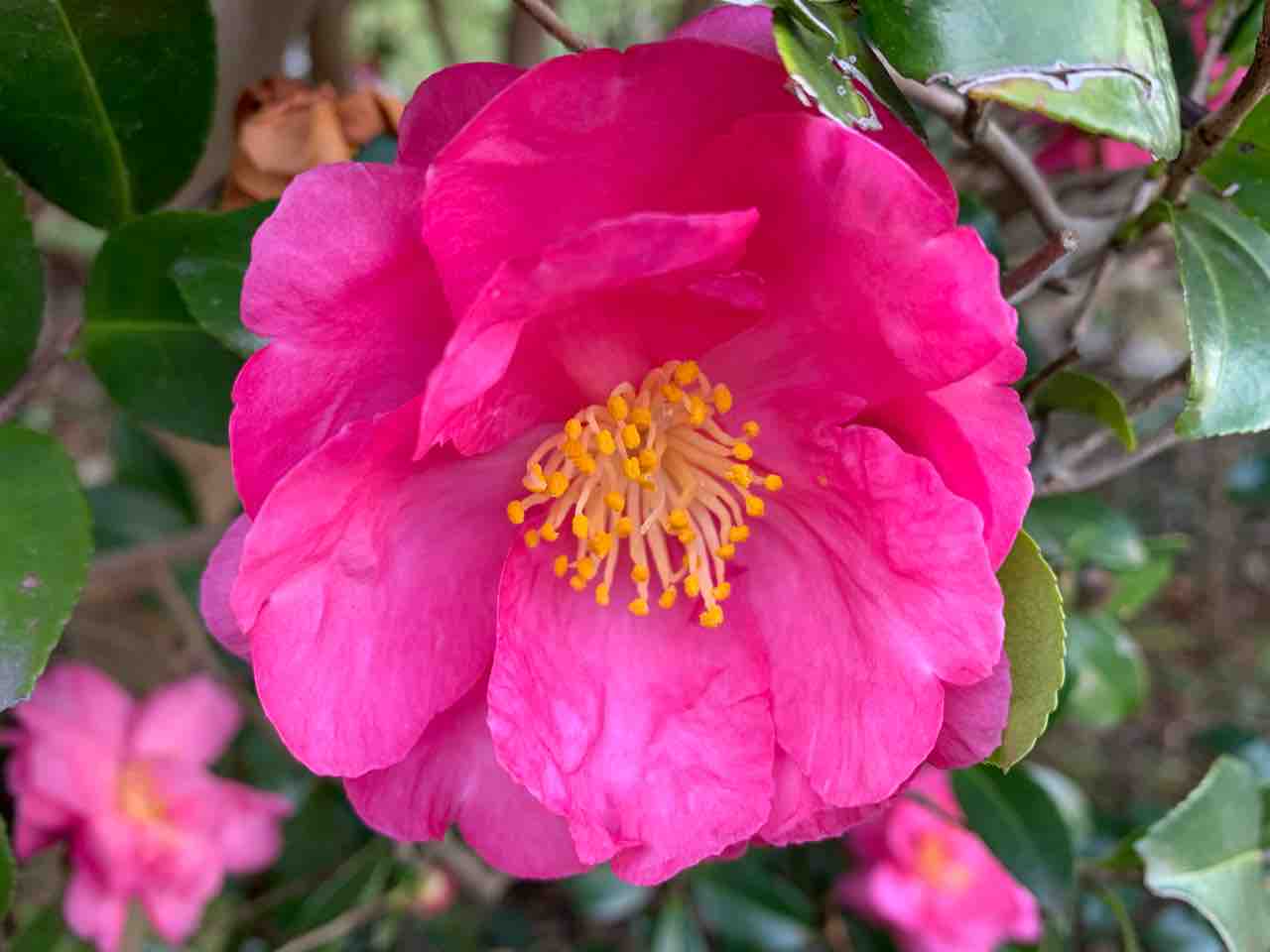 カンツバキの園芸品です。花は秋から冬に咲きます。