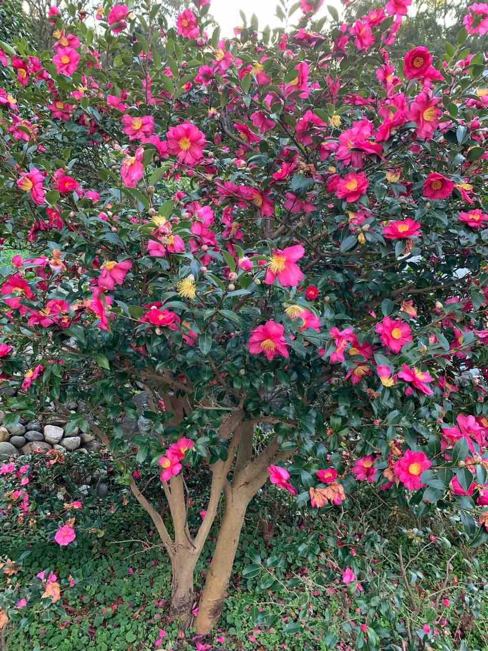 「松山総合公園」には椿(つばき)に親しんでもらおうと立派な「椿園」があります。