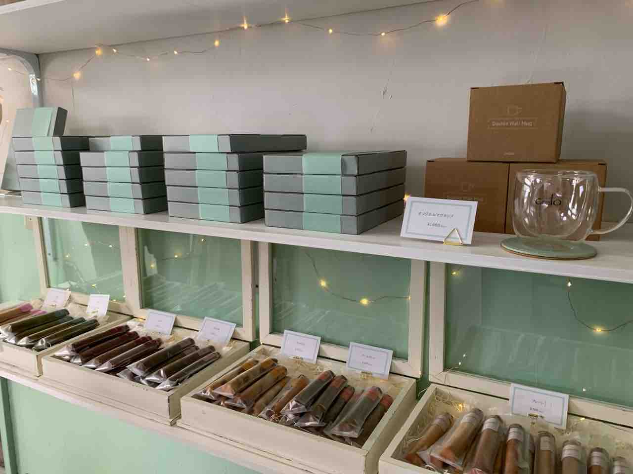 小部屋に入ると右手に商品棚。