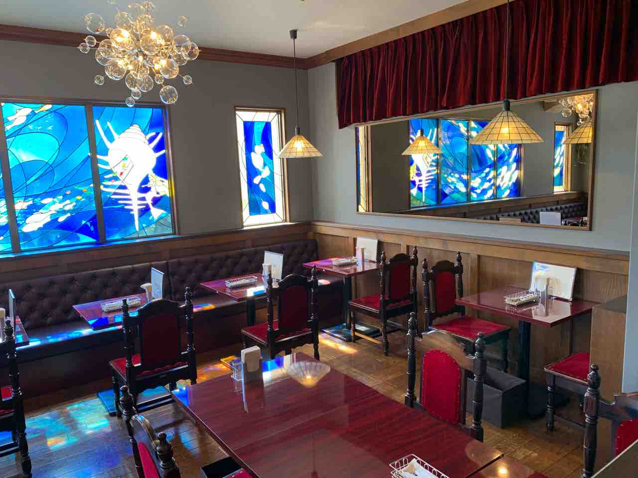 ステンドグラスから差し込む光は店内をより一層幻想的な空間にしています。