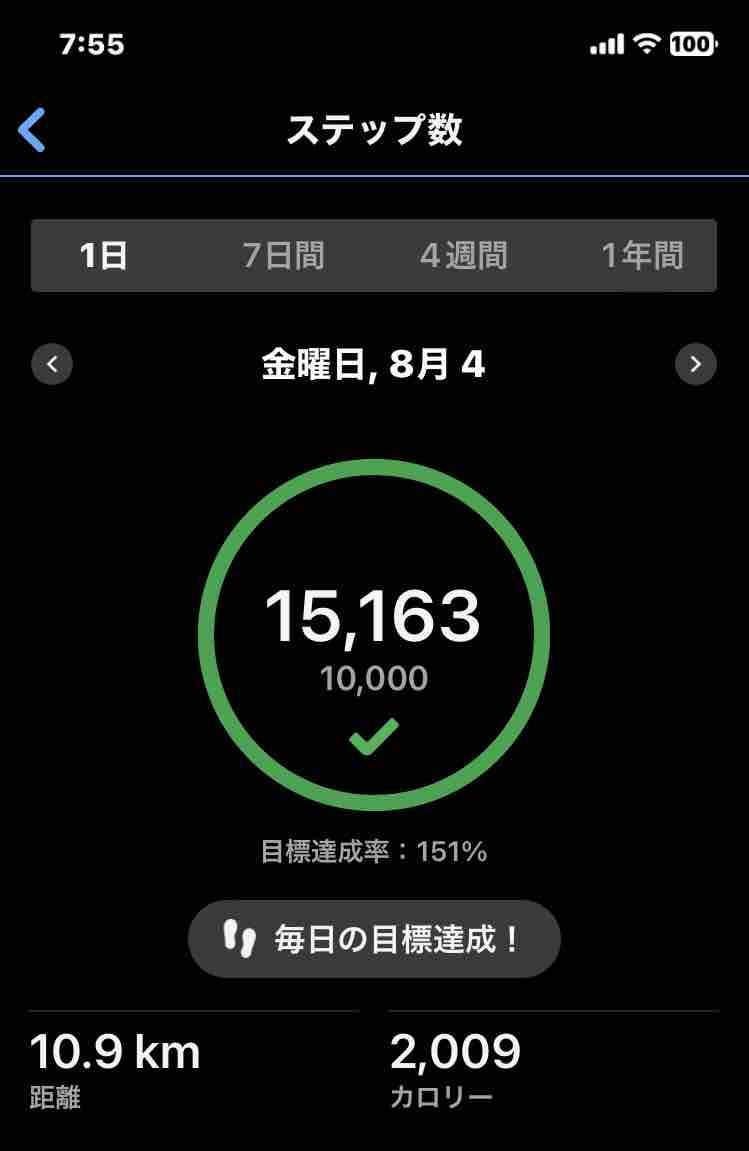 ■8月4日(金):15,163歩