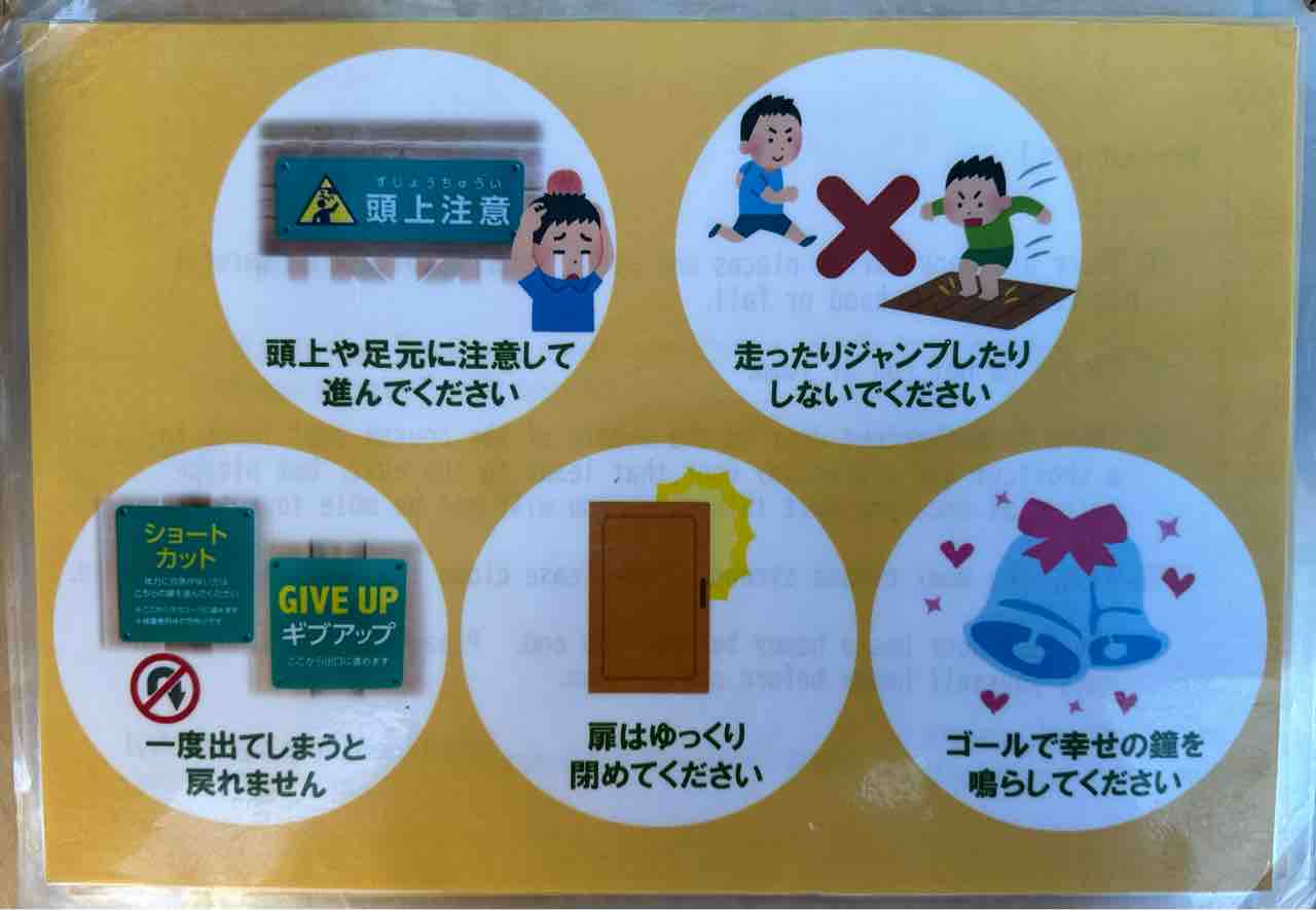 感想は大人も楽しめるアスレチックになっています。ゴールまでのタイムを競うのではなく、体を動かしたり柔軟な頭を使って扉を開けたりと面白い工夫がしてあります。
