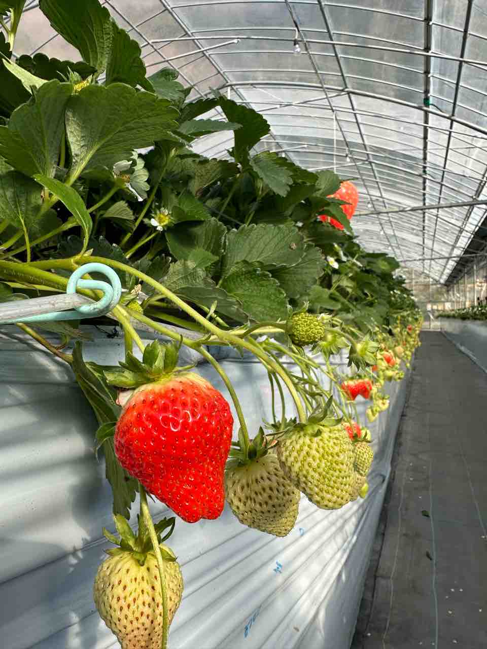 何より「高設栽培」だからいちごが腰の高さで摘み取りやすく、汚れることがほぼなく洗わず食べられます。