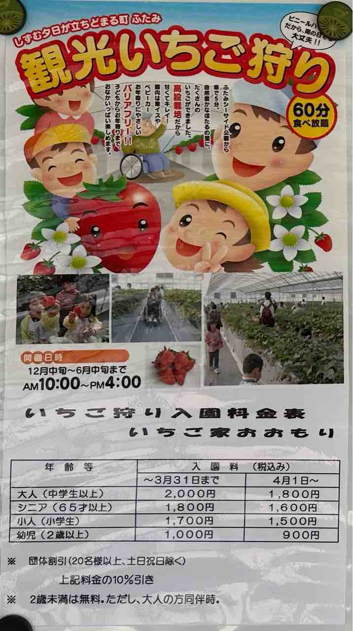 全国からお越しの観光客の皆様。「下灘駅」「ふたみシーサイド公園」に行かれたら、お帰りに「いちご家おおもり」の「いちご狩り」へ。