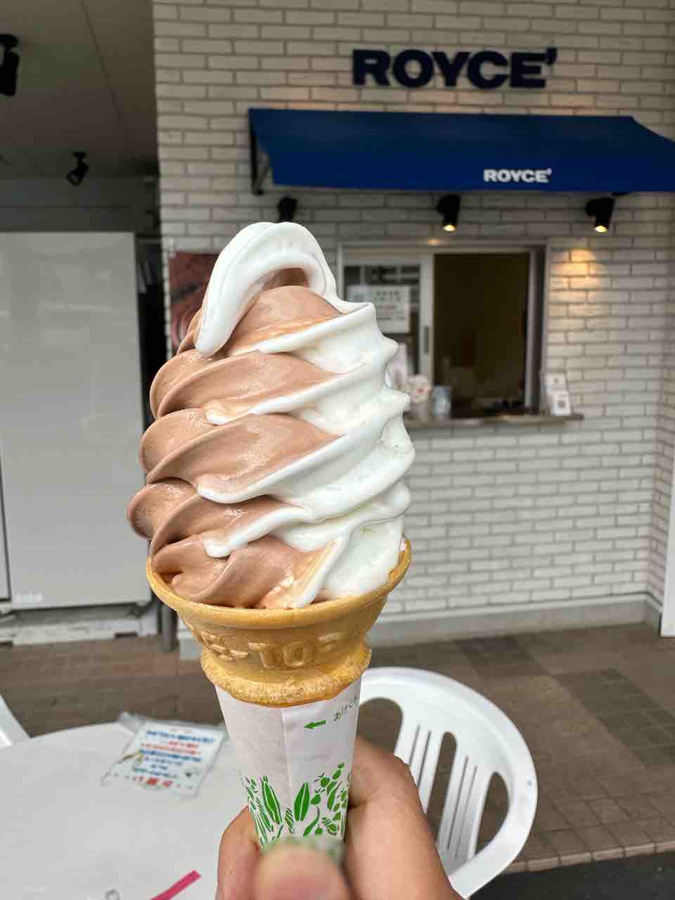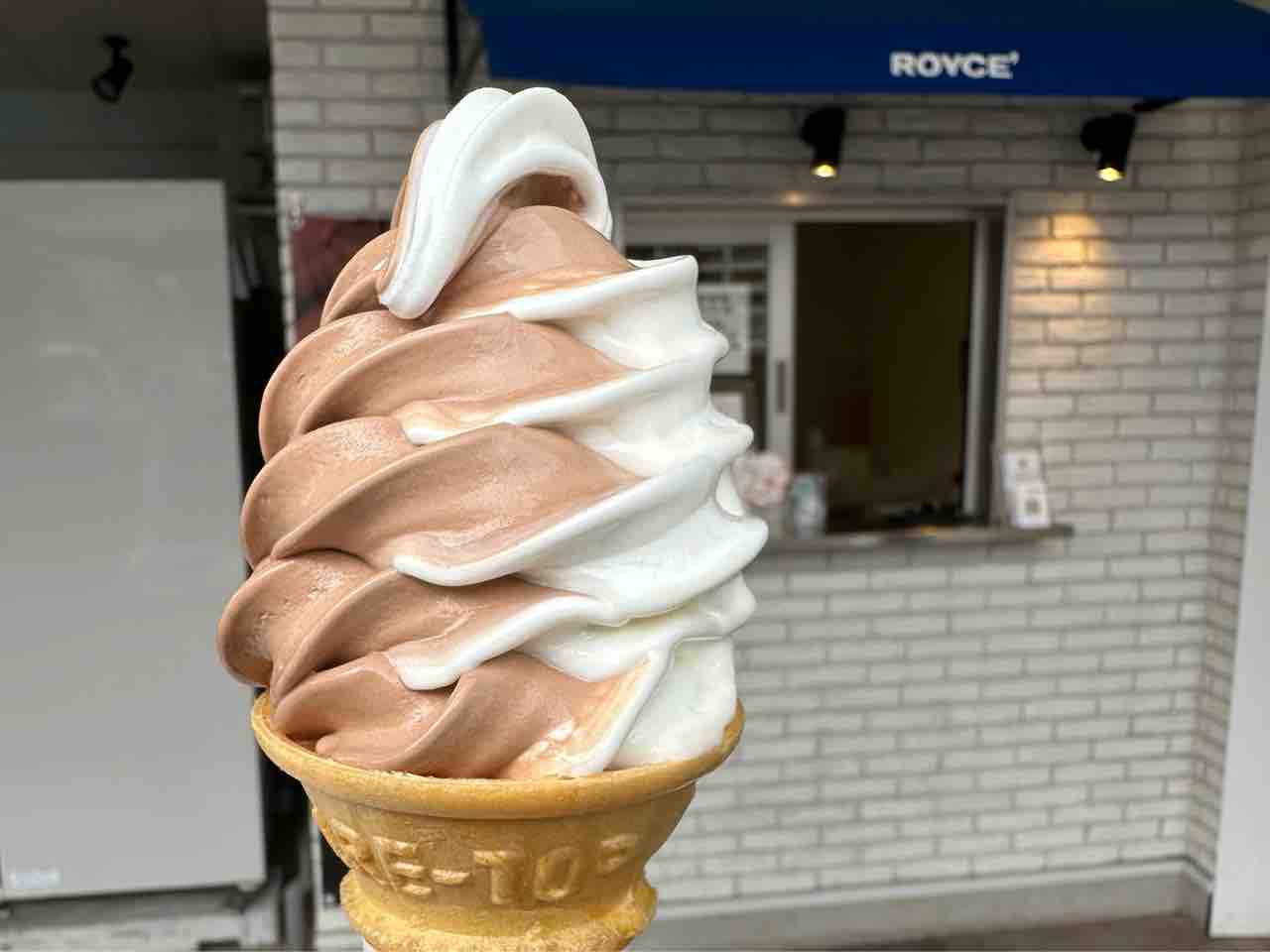 ロイズのオリジナルソフトクリームのミックスは、チョコレートとミルクのミックスです。