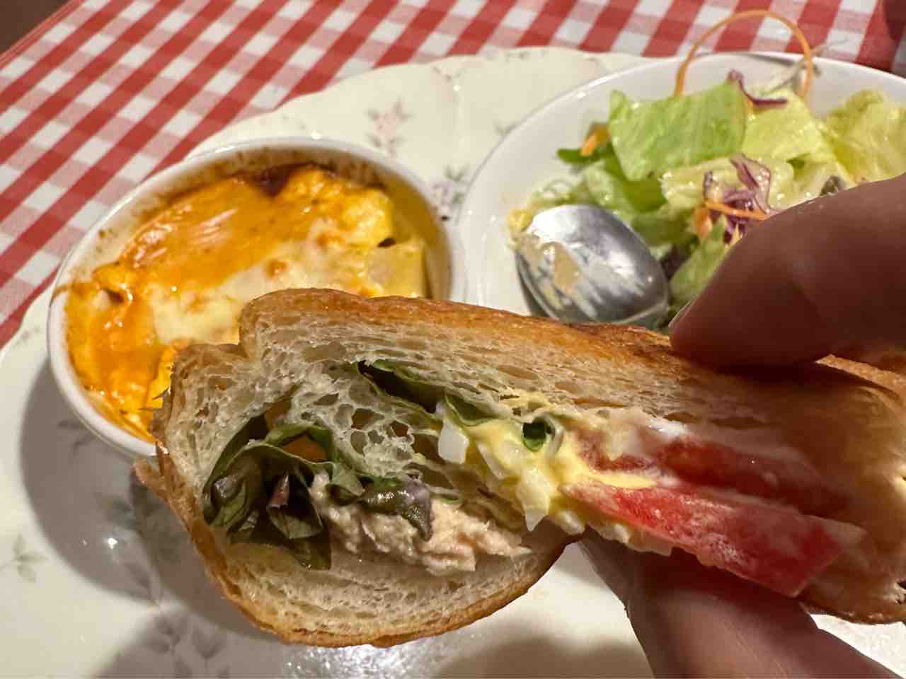 次に玉子サラダが登場します。ふんわりとした玉子の食感がクロワッサンの軽やかな食感と相性抜群です。