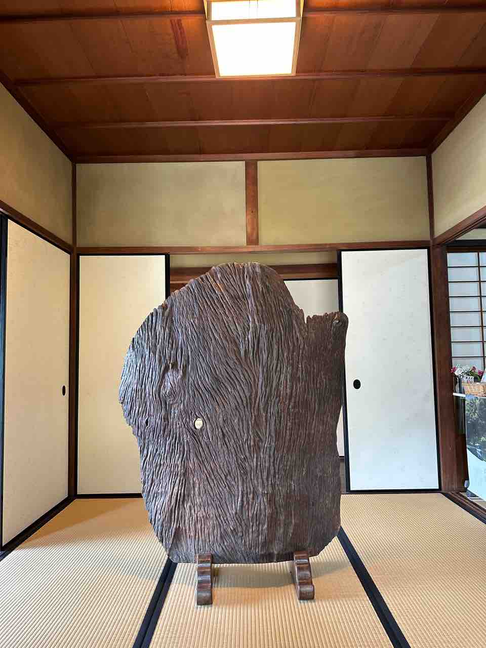 ◼️玄関2階が玄関になっています。建物に入ると大きな木の皮の置物が目に飛び込んできます。