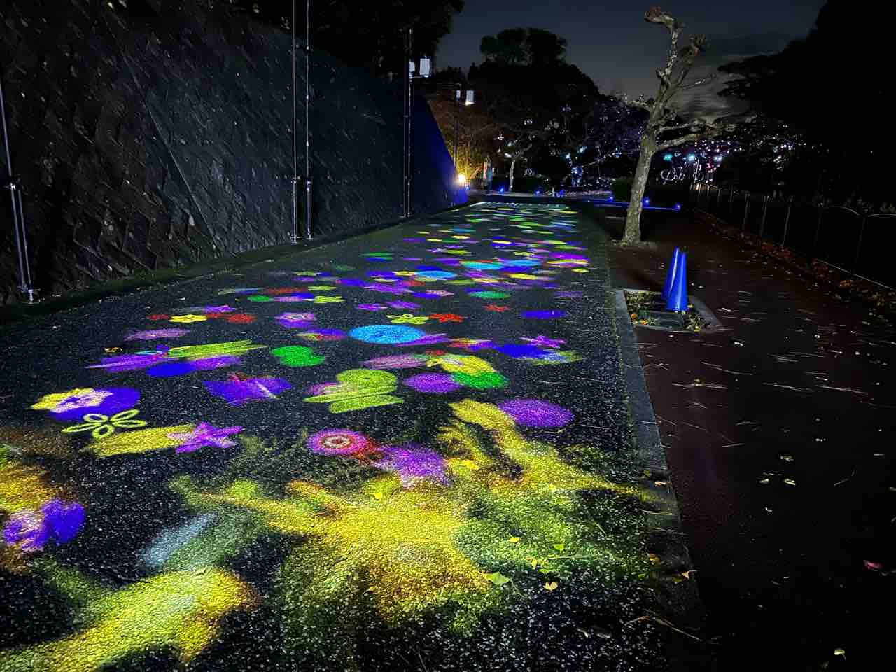 この道を歩くだけで、まるで星空の中を散歩しているかのような不思議な感覚に包まれます。光のアートは絶えず変化し、一歩進むたびに新しい景色が広がるので、思わず立ち止まってじっくり眺めたくなるほどの美しさです。