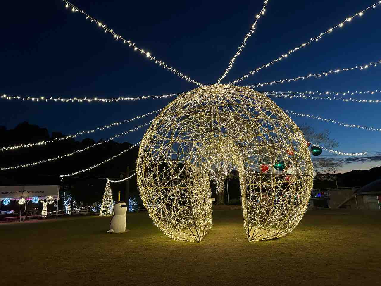 訪れる人々を非日常の世界へと誘うこのトンネルは、大人も子どもも夢中になること間違いなし。夜空の下での特別なひとときをぜひ体験してください。