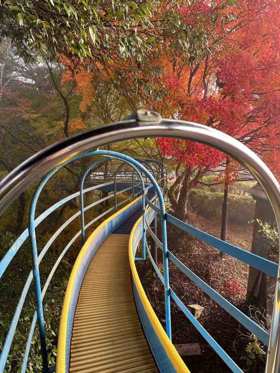 もう一つのおすすめスポットは、「ローラー滑り台」近辺の紅葉です。