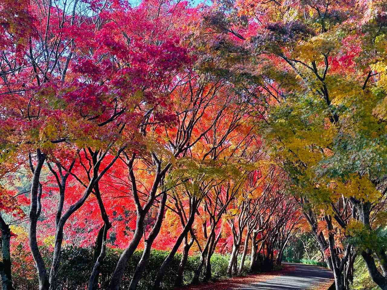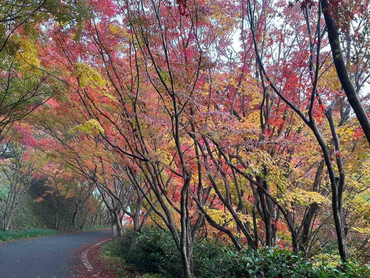 ◼️車道沿いに続くモミジトンネル