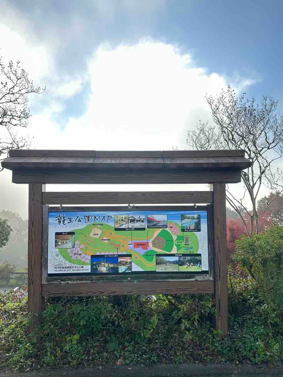 愛媛県喜多郡内子町五十崎にある「龍王公園」は、広大な自然と充実した設備を兼ね備えた公園です。秋になるとイチョウやモミジが鮮やかに色づき、多くの訪れる人々を魅了します。