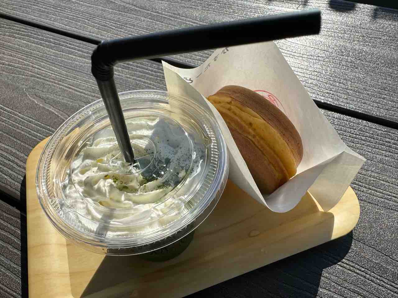 抹茶ドリンクはたっぷりのクリームと振りかけられた抹茶パウダーが印象的。抹茶本来の深い味わいと、クリームのまろやかな甘さが調和し、上品な一杯に仕上がっています。