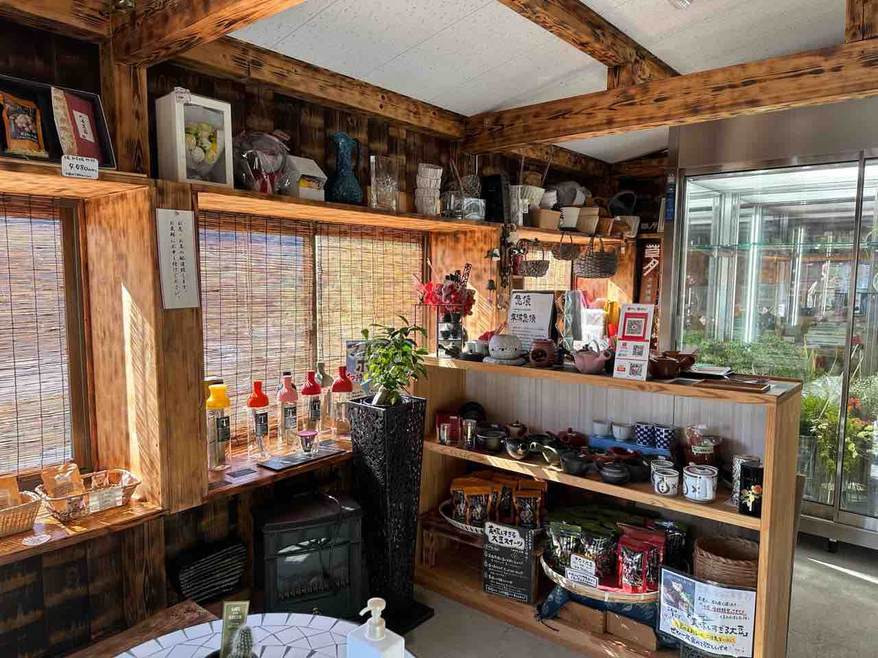 右手の店舗では贈り物にも最適な 八女茶 や生花が揃っています。