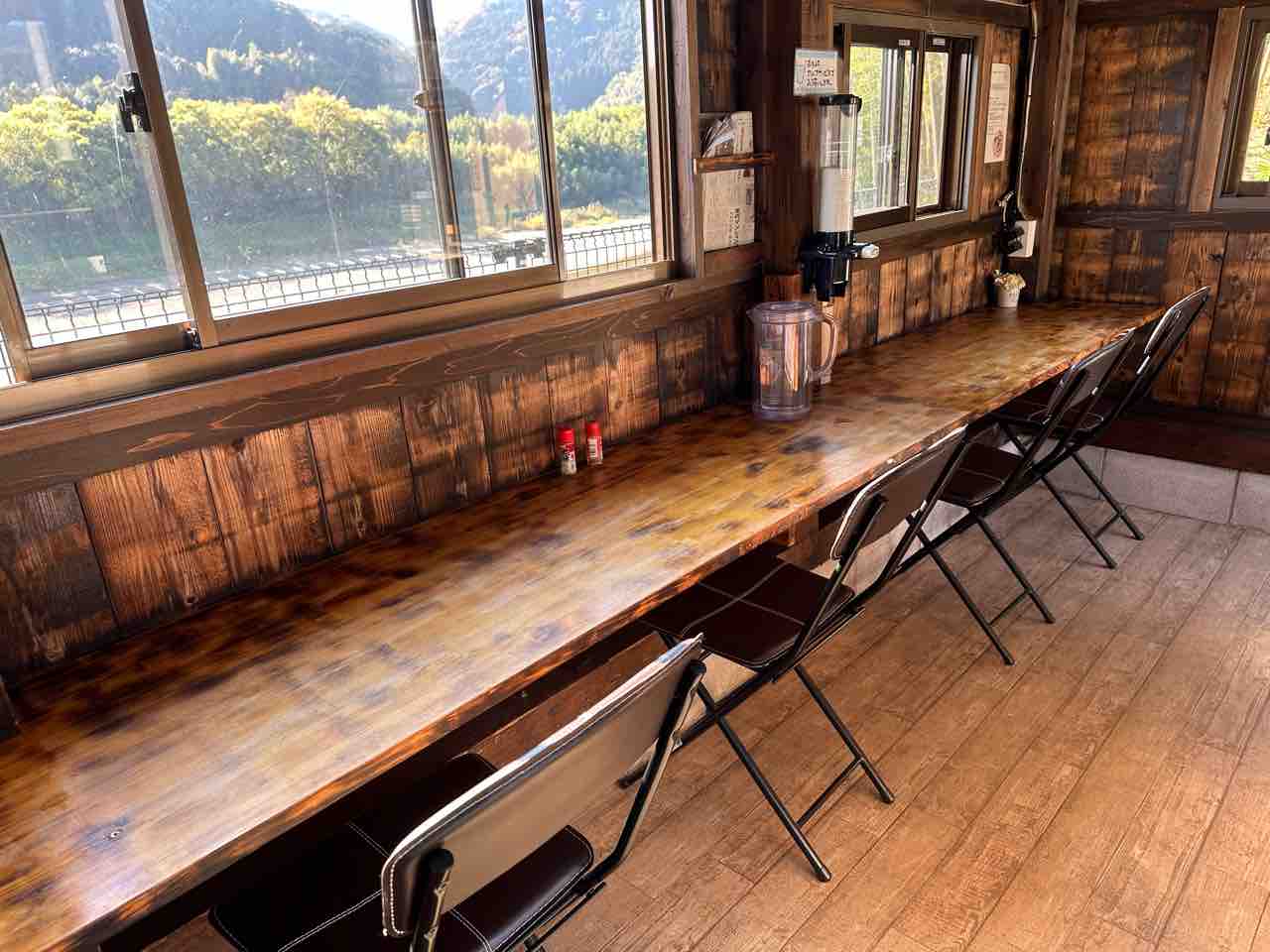 店内には、川沿いに面したカウンター席のイートインコーナーが設置されています。