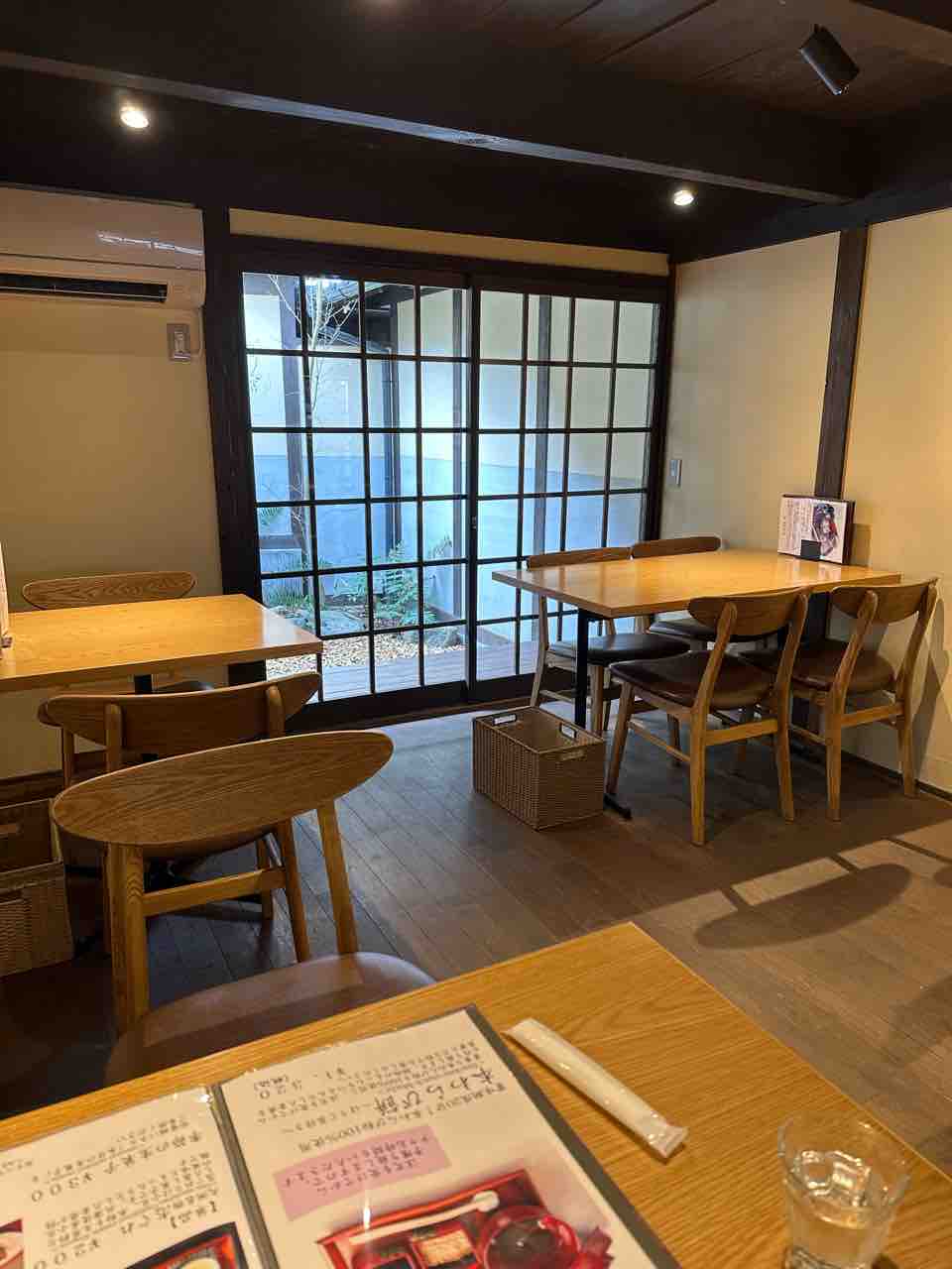 テーブル席はそれぞれ趣が異なり、庭を望める席や、ゆったりと過ごせる席など、どこに座っても和の風情を感じられるのが魅力。一人でも、友人や家族とでも、心地よい時間を過ごせるでしょう。