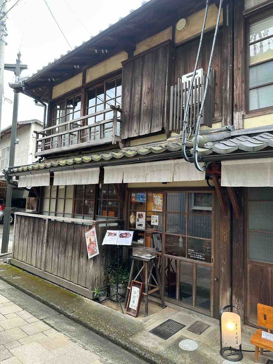 「茶寮 平野屋」は、大洲の町並みに自然と馴染む歴史ある木造建築のカフェ。長年大切に守られてきた木の風合いが、落ち着いた雰囲気を醸し出しています。