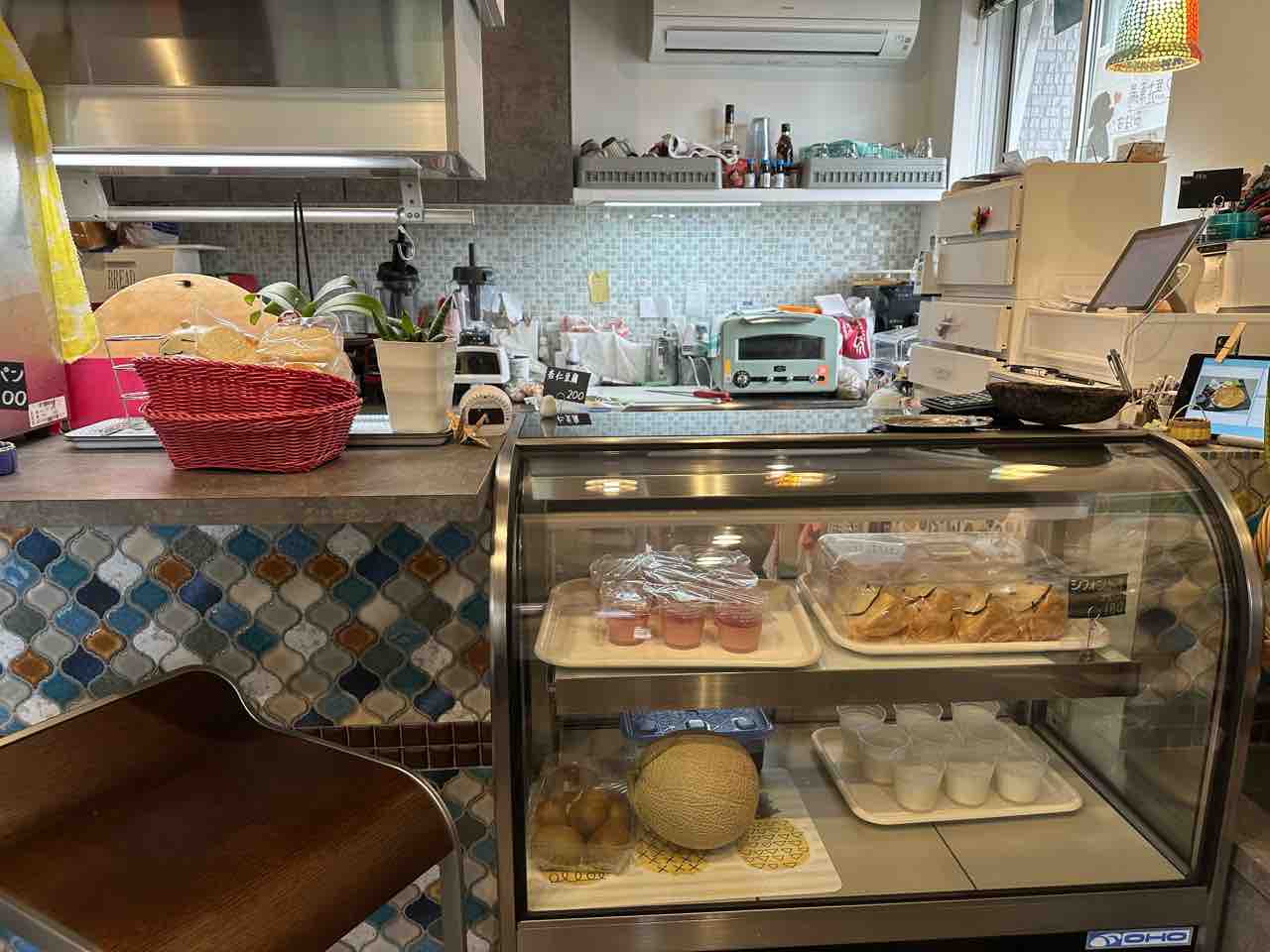 レジ下にはシフォンケーキや杏仁豆腐が並び、可愛らしいディスプレイも楽しめます。店主のセンスと心遣いが随所に光る、居心地の良い空間です。