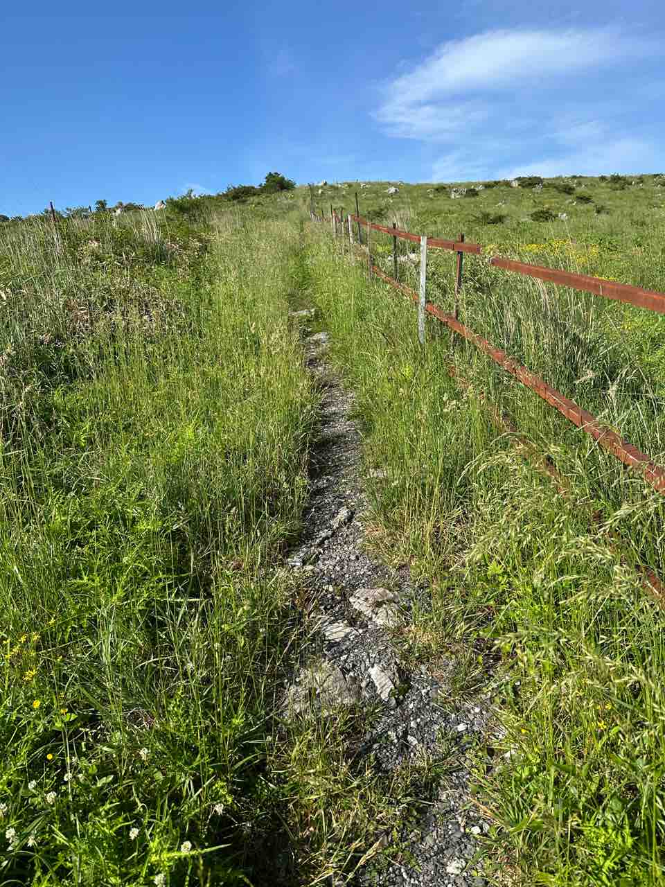 石が多く傾斜のある草道ですが、スニーカーでも十分歩行可能です。