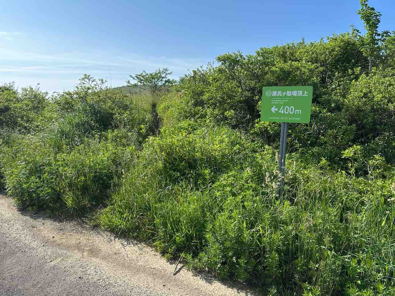 駐車場から「源氏ヶ駄場」の頂上までは、およそ400メートルのゆるやかな登山道を10分ほど歩きます。