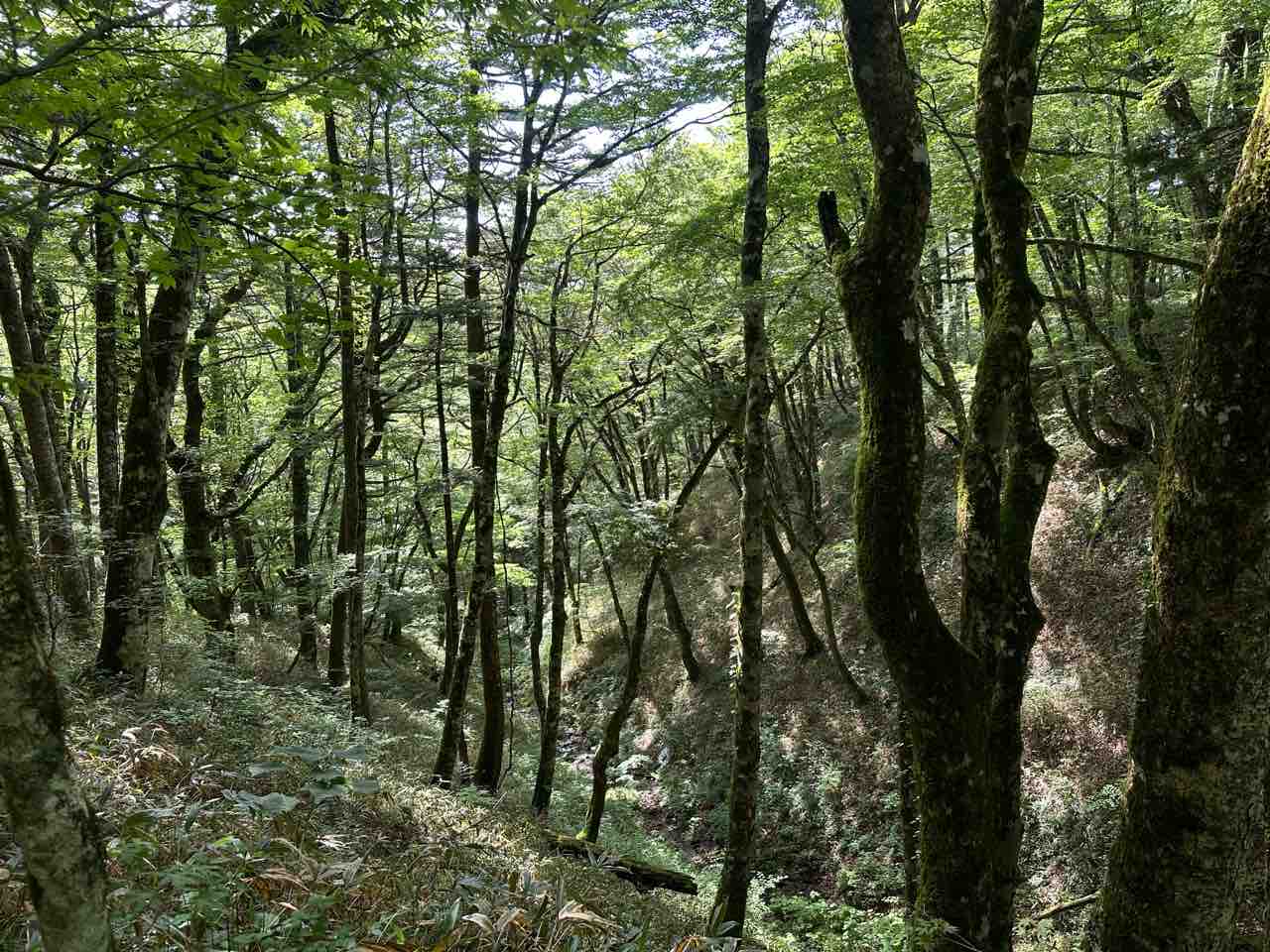 かつては四国の平野部にまで広がっていたブナの森も、温暖化の進行とともに高地へと追いやられ、今ではこうした標高の高い場所にしか残っていません。