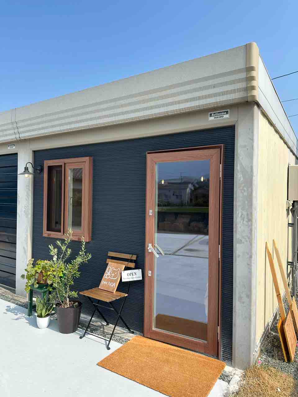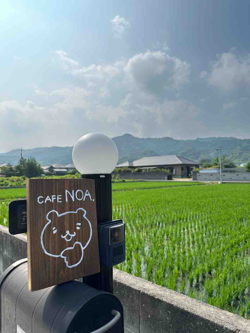 松山市郊外ののどかな水田に囲まれた場所にひっそりと佇む「NOA.」の外観は、シンプルながら温かみを感じさせてくれます。