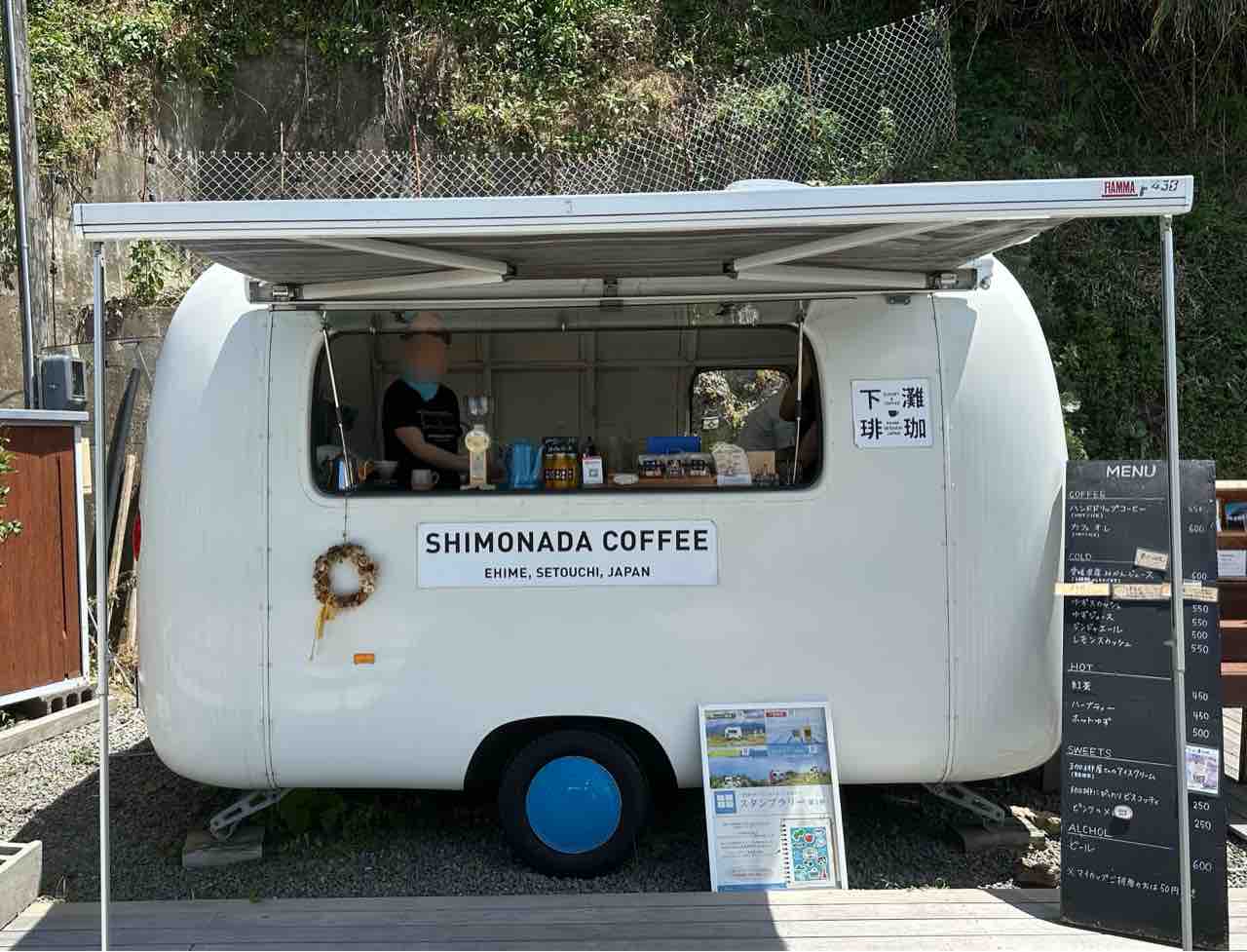 トレーラーの中央には大きく「SHIMONADA COFFEE」のロゴが描かれ、旅の途中にふと立ち寄りたくなる雰囲気が漂います。 窓越しには笑顔のスタッフさんが立ち、一杯ずつ丁寧にハンドドリップでコーヒーを淹れてくれる様子に、初めての人も思わず笑顔に。