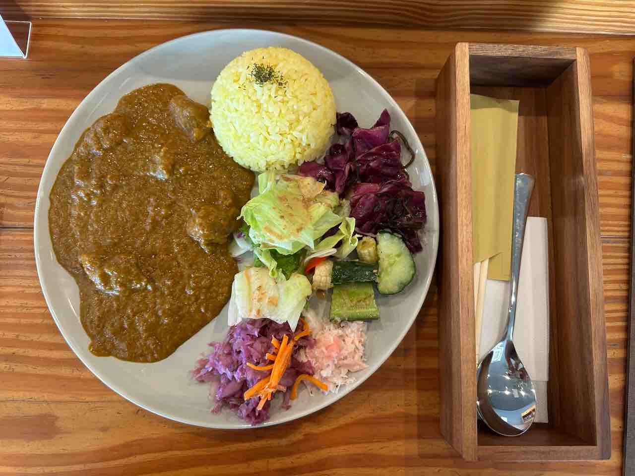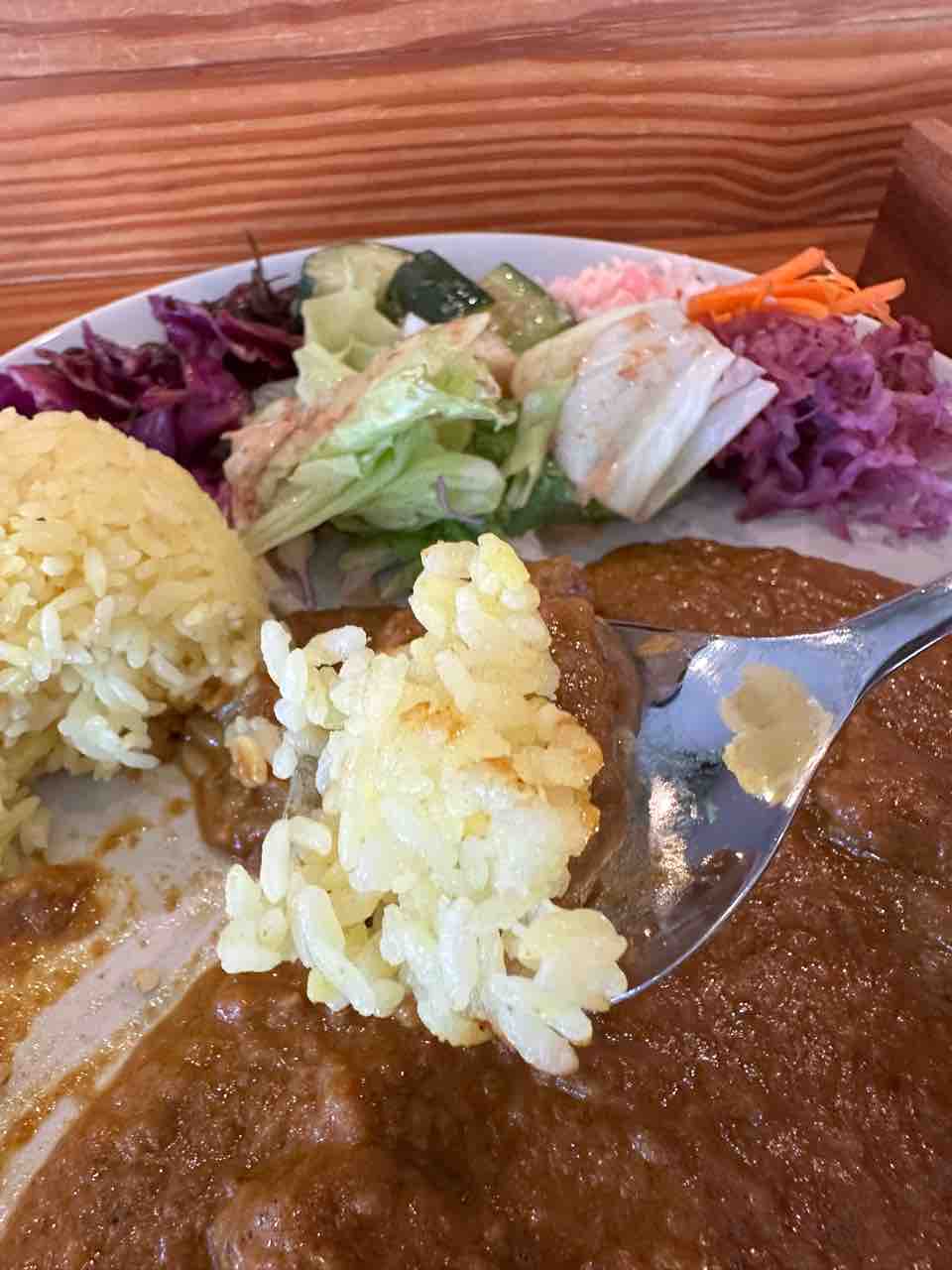 スパイスの奥深さと野菜の爽やかさが一皿で調和し、最後まで飽きずに楽しめました。まさに「地元食材の宝箱」と呼びたくなる一品です。
