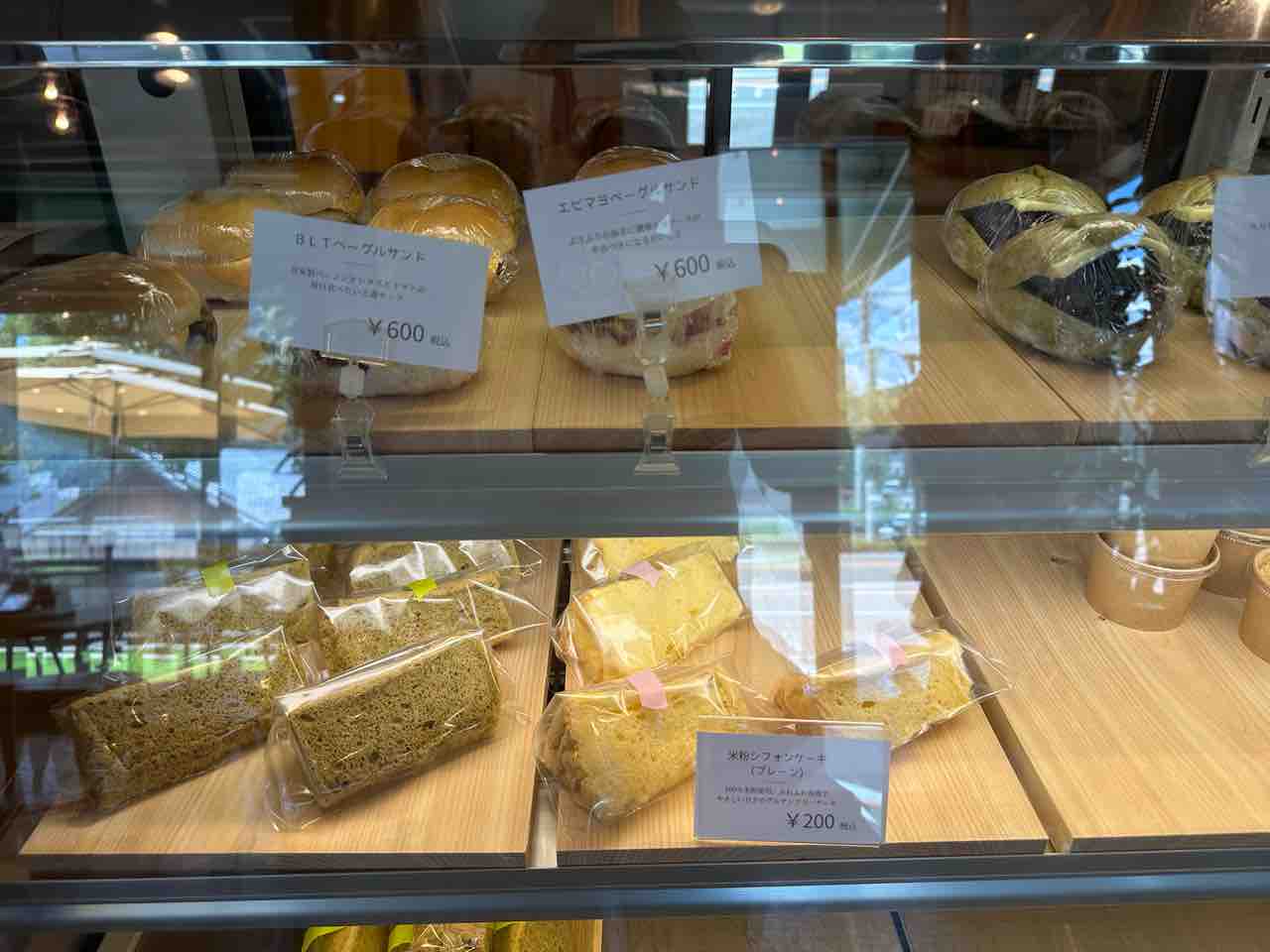 ショーケースにはベーグルやシフォンケーキが並び、選ぶ楽しみも味わえます。