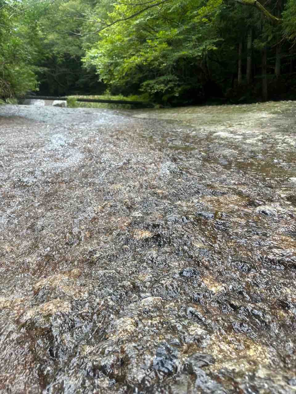 透明度の高い水は川底まで透き通り、子ども連れでも安心して水遊びが楽しめるのが魅力。