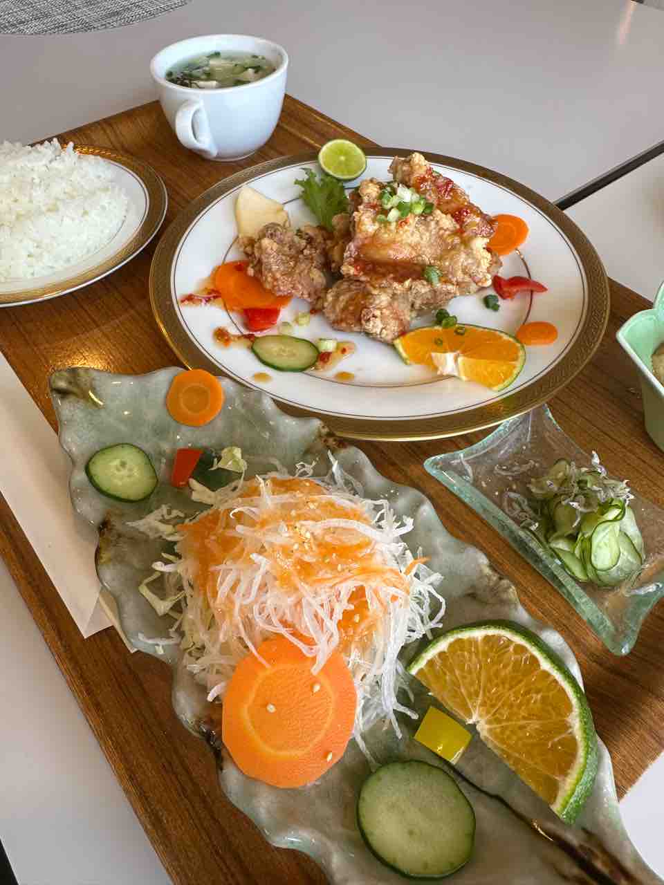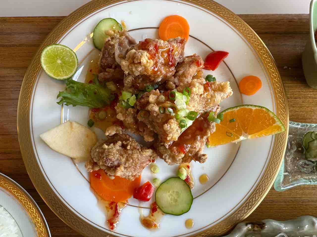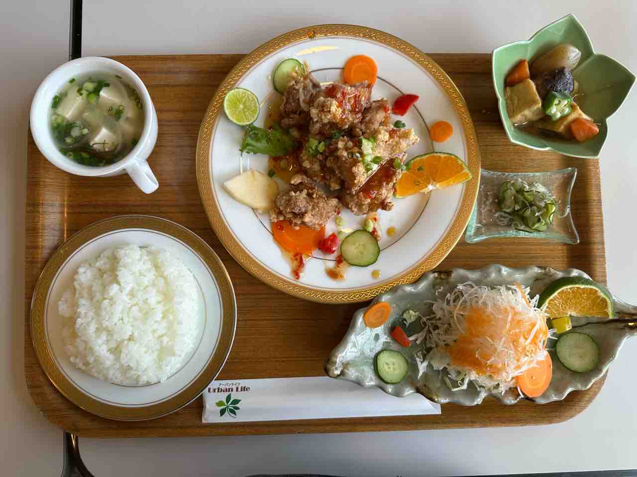 今回いただいたのはランチセット「唐揚げランチ(ピリ辛チリソースがけ)」。