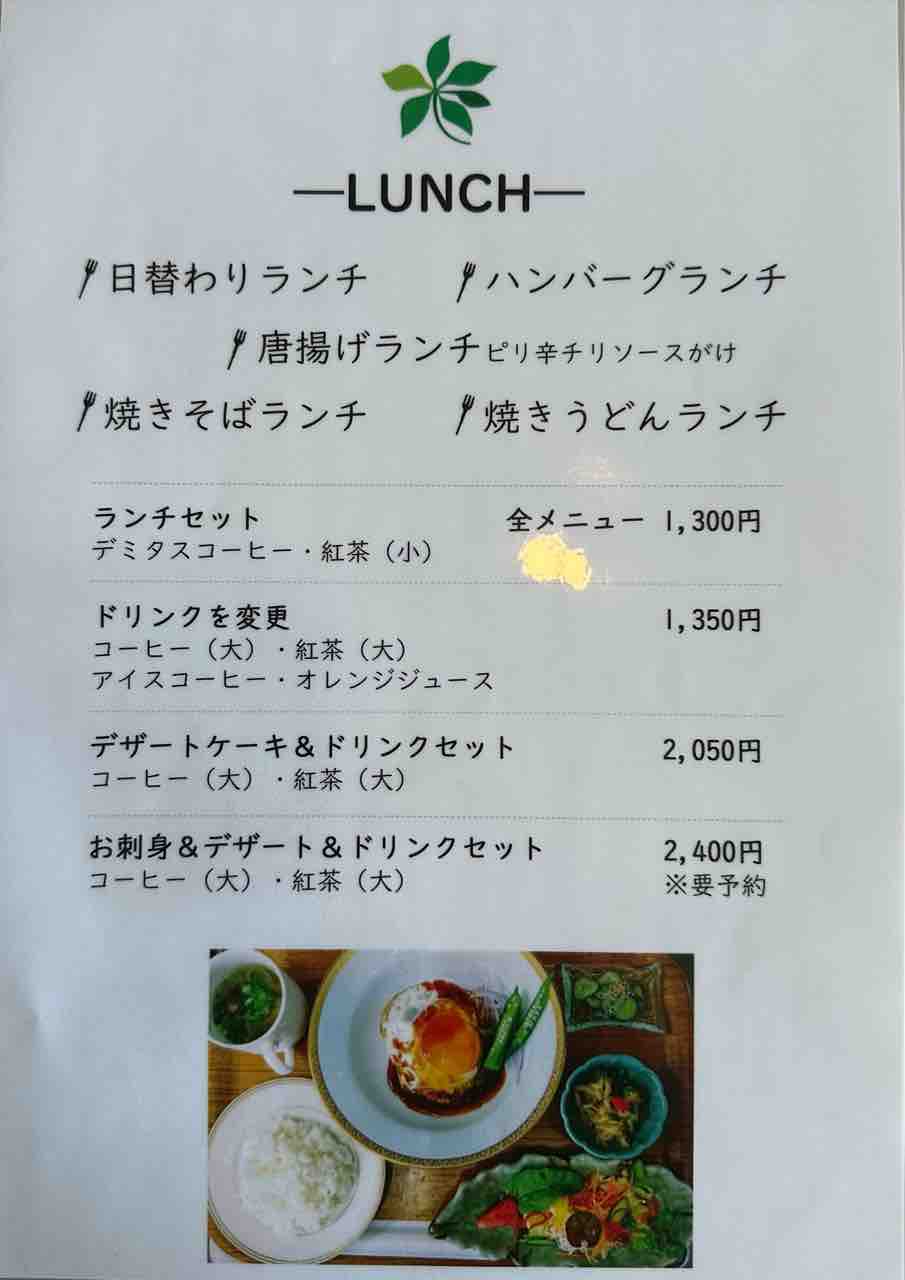 ランチは日替わりや唐揚げ、ハンバーグなど5種類が用意され、どれも手頃な価格でデミタスコーヒーか紅茶(小)付き。ボリュームとバランスを兼ね備えた内容は、日常のランチタイムをちょっと特別なものにしてくれます。