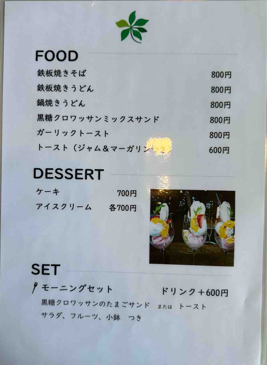 軽食では鉄板焼きそばや黒糖クロワッサンのサンドが人気。黒糖の甘みと香ばしいパンに具材を挟んだサンドは、ここならではのこだわりの味です。