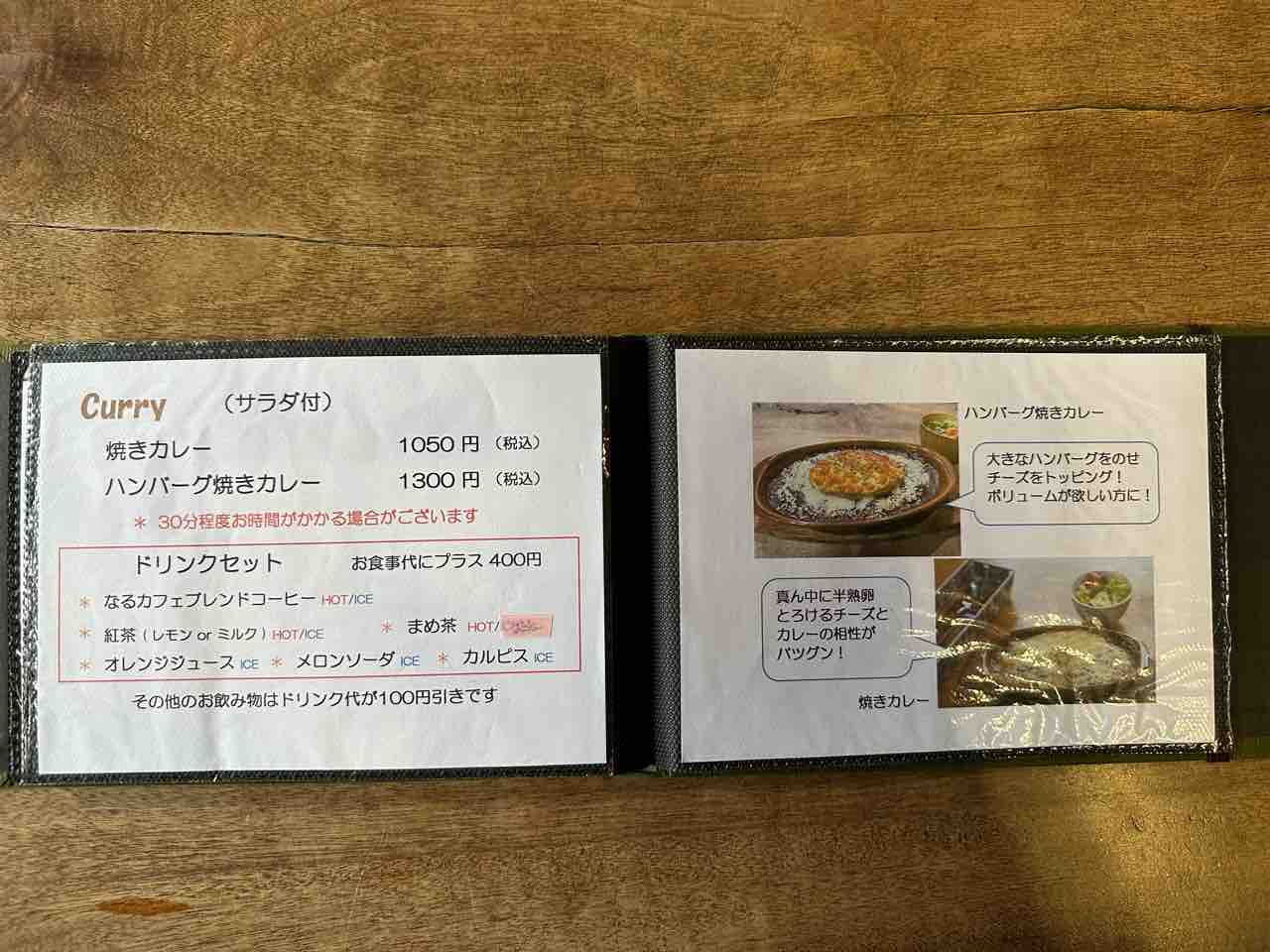 焼きカレーはシンプルとハンバーグのせの2種があり、香ばしいチーズとスパイスの香りが食欲をそそります。地元客にもファンが多く、「手間を惜しまない料理」が提供されているのが伝わります。