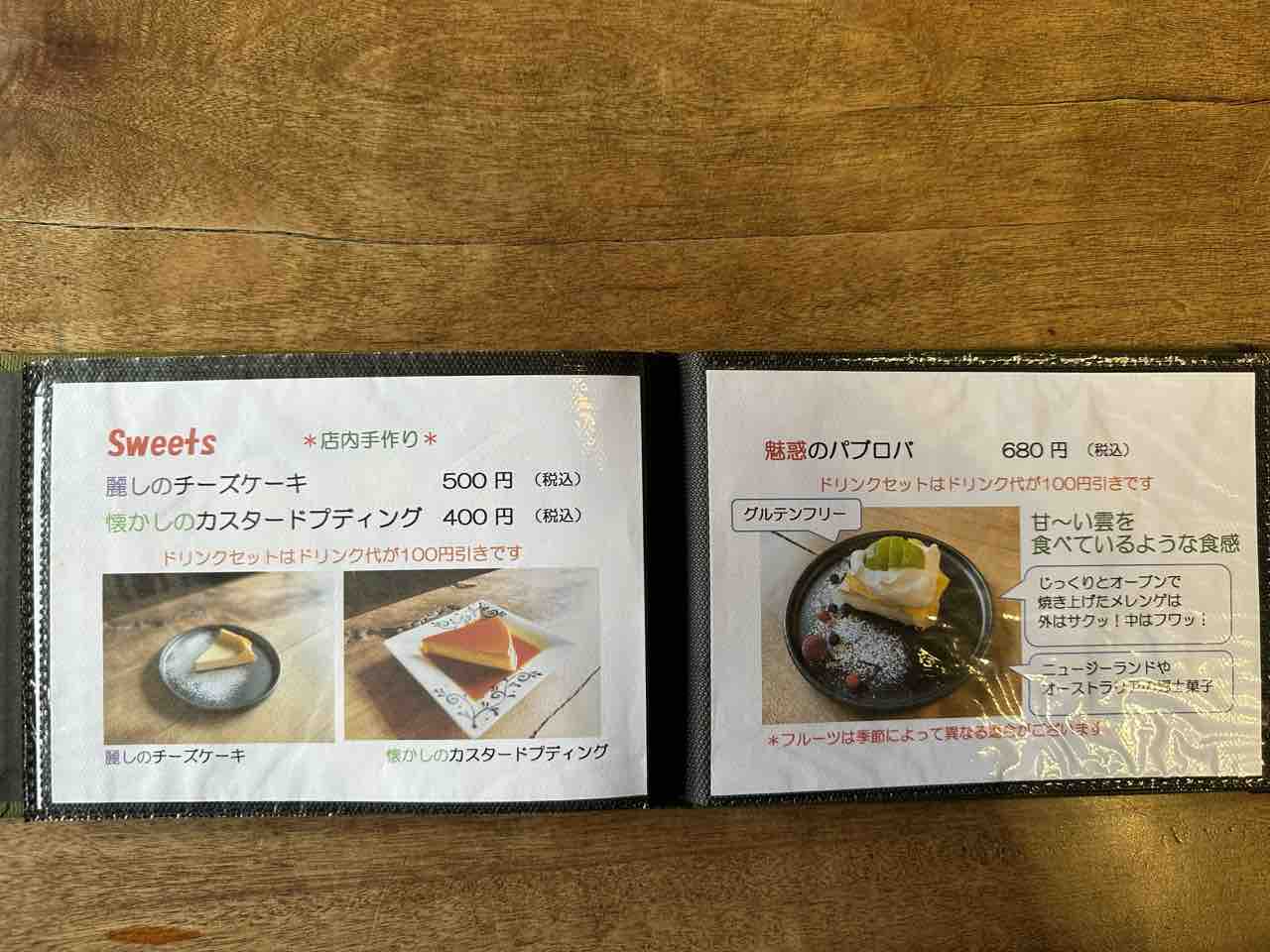 ランチにはパスタ3種や焼きカレーが人気で、どれも丁寧に作られているのが伝わる味わいです。午後からはトースト類が登場し、観光の合間の軽食としても使いやすいのが魅力。手作りスイーツも豊富で、「どれを選んでも間違いない」と感じられる安心感があります。