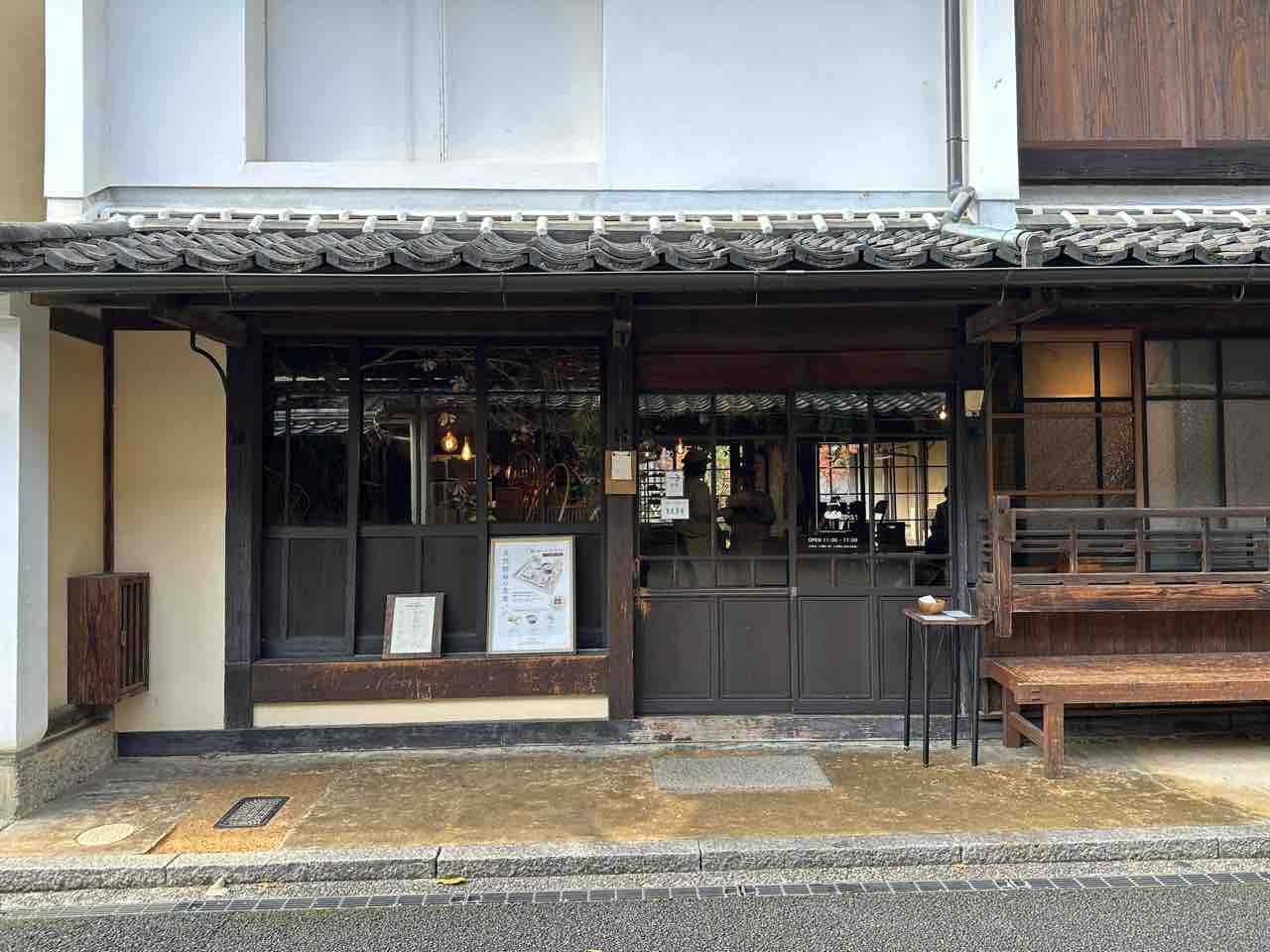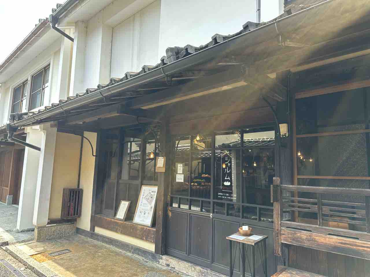 白壁と深い木の色が静かに調和する「シャルム」の外観は、町家建築の風情を見事に残しつつも、パン屋としての温もりがにじみ出ています。瓦屋根の重厚感、木枠ガラス戸の透明感、そして柔らかな照明が窓越しにこぼれ、歩く人の足を自然と止めさせる魅力があります。