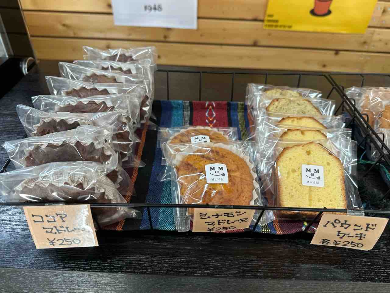菓子工房 MandMのメニューは、スイーツから軽食、ドリンクまで幅広く揃っており、どの時間帯でも訪れやすいのが魅力です。 ショーケースには看板商品の