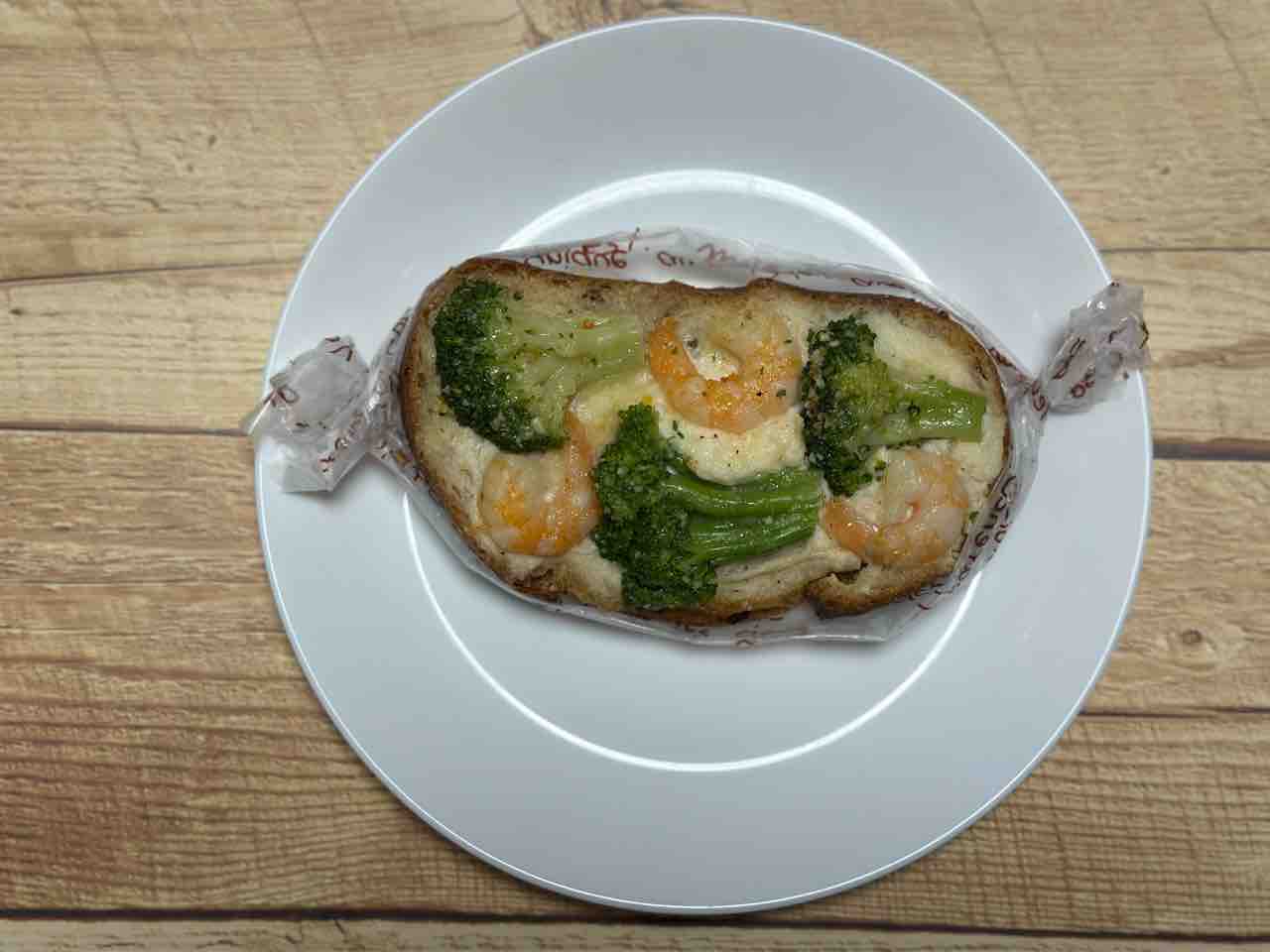 アヒージョの名に偽りなしの、本格的な風味が印象的な惣菜パンです。ぷりっとした海老とホクホクのブロッコリーが贅沢にのり、ガーリックとオリーブオイルの香りが食欲を刺激します。