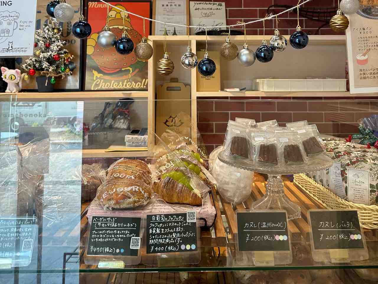 さらに、カヌレなどの焼き菓子も揃い、手土産にも重宝します。どのパンにも説明書きが添えられ、作り手の想いが伝わるメニュー構成です。
