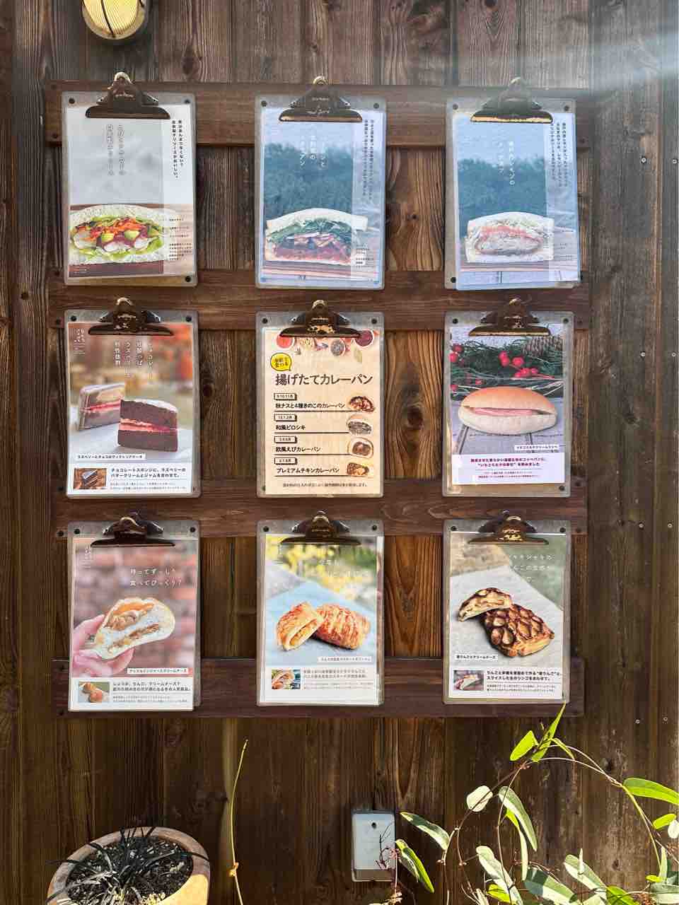 入口へ向かう小さなアプローチを歩くだけでも、街の喧騒から少し離れたような感覚に。入口付近の木製ボードには、その日並ぶパンの写真が掲示され、「今日はどんな香りに出会えるだろう」と、自然と想像がふくらみます。