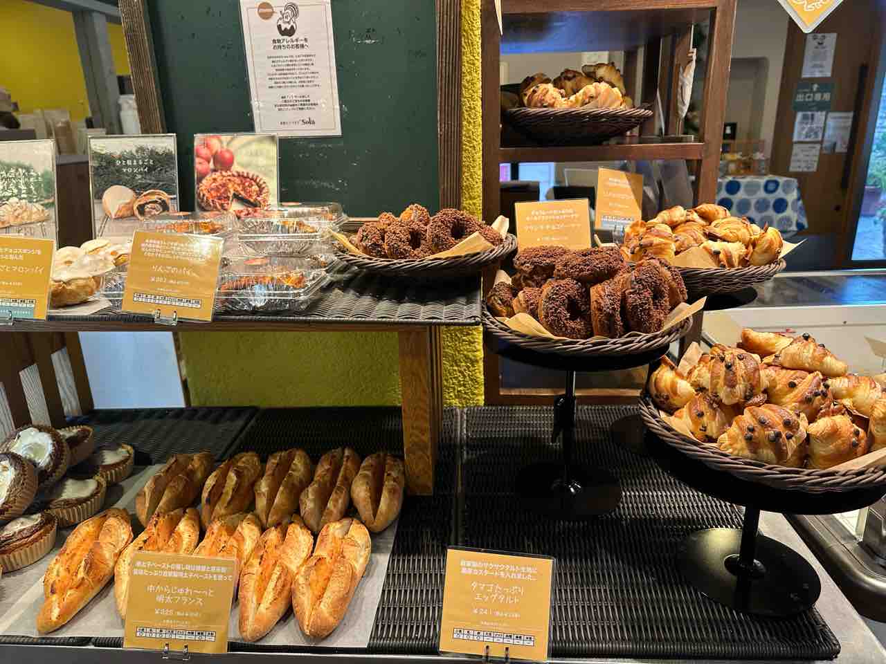 “sola”という名前は、solar(太陽)と空を組み合わせた造語だそうで、やわらかな響きを持ち、店に一歩足を踏み入れた瞬間から、その空気感が自然と伝わってきます。気取らず、それでいてどこか凛とした雰囲気があり、ここではパンそのものが静かに存在感を放っています。