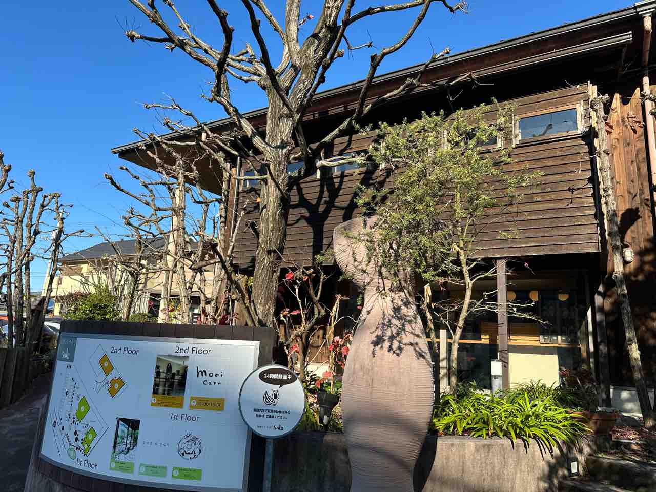 派手な看板はありませんが、その控えめな佇まいがかえって印象に残り、気づけば足を止めて眺めてしまう、そんな外観です。 敷地内には丁寧に手入れされた植栽が並び、春の芽吹きや夏の深い緑、季節の移ろいをそっと教えてくれます。